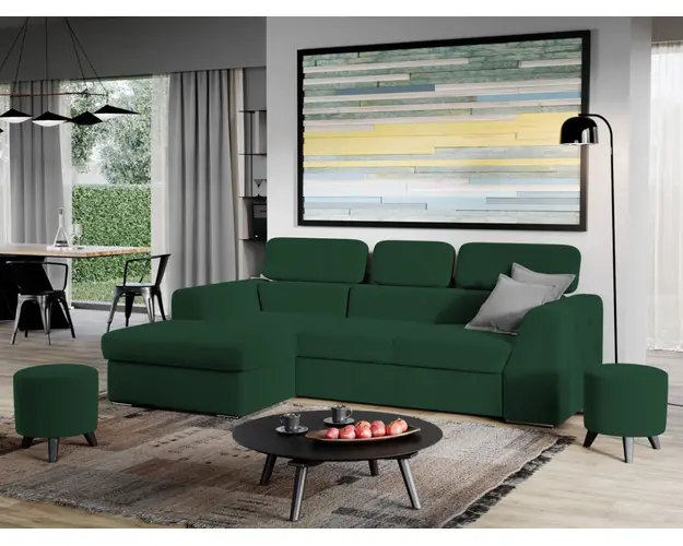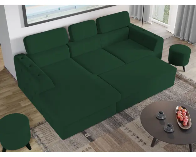 Coltar Grace Verde Stim cat de important este sa alegi piesa centrala a sufrageriei, asa ca am gandit acest coltar bifand trei elemente esentiale: confort, utilitate si aspect. Coltar Grace Verde prezinta trei tetiere reglabile si lada pentru depozitare pozitionata sub sezlong, care poate fi accesata prin ridicarea partii superioare a acestuia. Imbina cu succes functionalitatea cu designul, transformandu-se rapid intr-un pat confortabil de 200 x 130 cm . Butonii de pe brate dau un plus de eleganta si stil oricarui living. Este potrivit pentru un living cu dimensiuni generoase, avand dimensiunea de: 260 cm lungime, 165 cm latime, 94 cm inaltime totala . Este tapitat cu stofa de calitate pe diverse culori. Atentie: Pretul afisat nu include alte accesorii sau obiecte de decor. Taburetele, pernele deco si draperiile se pot achizitiona optional. Livrare gratuita si rapida, 4-10 zile lucratoare prin flota proprie Suntem producatori de tapiterii, fara intermediari Toate piesele de tapiterii au o garantie de 2 ani Sezutul si extensia coltarului sunt din poliuretan High Resilience . Scheletul este rezistent, realizat pe structura solida de fag si pal. Extensia de tip sertar este pozitionata sub sezutul coltarului. Se deschide ca un sertar, apoi se ridica salteaua din interiorul acestuia. Coltar Grace Verde se incadreaza cu usurinta in majoritatea locuintelor indiferent de stilul acestora. Puteti alege din mai multe culori pentru stofa. Produsele disponibile le puteti vedea aici Modele Grace . Dimensiuni Coltar Grace Lungime: 260 cm Latime: 165 cm Lungime intre brate: 200 cm Inaltime sezut: 45 cm Inaltime: 94 cm Adancime sezut: 63 cm Adancime selon 130 cm Latime sezlon 100 cm Inaltime brate: 60 cm Lungime brate: 96 cm Inaltime spatar cu tetiere inchise: 72 cm Inaltime spatar cu tetiere ridicate: 94 cm Dimensiuni extinsa Lungime extinsa: 200 cm Adancime extinsa: 130 cm Tapiterie Coltar Grace Verde Tapiteria produsului este din stofa Verde. Nuanta acestui produs nu este pretentioasa, mascheaza eventualele evenimente neplacute prin care se poate murdari sau pata si se integreaza perfect in majoritatea locuintelor. Intretinere: se recomanda ca praful sa se stearga cu un material textil moale (finet) umed si sa nu se curete cu agenti chimici (diluant, acetona). Imaginile sunt cu titlu de prezentare si pot avea mici diferente de nuante in functie de display. Dimensiunile sunt exprimate in centimetri si pot oscila intre ± 50 mm. Produsul cu denumirea Coltar Grace Verde face parte din brandul Mobila laguna, se afla in categoria Canapele extensibile si subcategoria