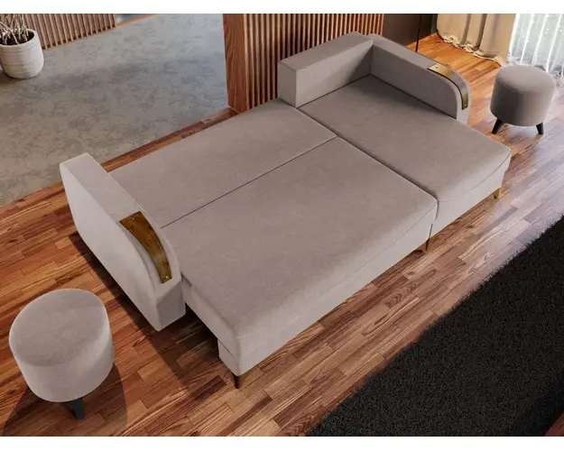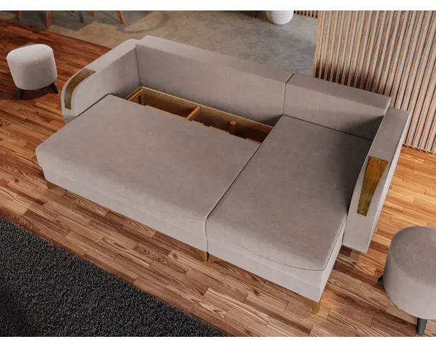 Coltar Londa Crem Coltar Londa Crem combina stilul si confortul, fiind alegerea potrivita pentru locuinta dumneavoastra. Picioarele si insertiile de culoarea lemnului de pe brate completeaza eleganta acestui coltar. Pe langa aspect, ofera confort prin cele 3 perne detasabile, cat si prin faptul ca se poate transforma rapid intr-un pat ce are lada de depozitare dedesubt. Este recomandat atat pentru incaperi medii, cat si mari si are dimensiunile de: 245 cm lungime, 140 cm latime, 95 cm inaltime totala . Dupa extindere, obtineti un spatiu pentru odihna si relaxare, cu suprafata utila 210 x 140 cm . Este tapitat cu o stofa de calitate uni pe diverse culori. Atentie: Pretul afisat nu include alte accesorii sau obiecte de decor. Taburetele si draperiile se pot achizitiona optional. Livrare gratuita si rapida, 4-10 zile lucratoare prin flota proprie Suntem producatori de tapiterii, fara intermediari Toate piesele de tapiterii au o garantie de 2 ani Sezutul si extensia coltarului sunt pe relaxa (arcuri elicoidale si poliuretan) . Scheletul este rezistent, realizat pe structura solida de fag si pal. Extensia este de tip Doppelliege ce prezinta un sistem actionat prin role, astfel ca partea de sezut se trage si permite partii de spatar sa gliseze spre partea din fata si sa se pozitioneze orizontal. Coltar Londa Crem se incadreaza cu usurinta in majoritatea locuintelor indiferent de stilul acestora. Puteti alege din mai multe culori pentru stofa. Produsele disponibile le puteti vedea aici Modele Londa . Dimensiuni Coltar Londa Lungime: 245 cm Latime: 140 cm Lungime intre brate: 210 cm Inaltime sezut: 44 cm Inaltime: 95 cm Adancime sezut cu perne: 55 cm Adancime sezut fara perne: 80 cm Adancime selong cu perne: 100 cm Adancime selong fara perne: 120 cm Latime sezlon 72 cm Inaltime picioare: 10 cm Dimensiuni extins Lungime extins: 210 cm Adancime extins: 140 cm Tapiterie Coltar Londa Crem Tapiteria produsului este din stofa Crem. Nuanta acestui produs nu este pretentioasa, mascheaza eventualele evenimente neplacute prin care se poate murdari sau pata si se integreaza perfect in majoritatea locuintelor. Intretinere: se recomanda ca praful sa se stearga cu un material textil moale (finet) umed si sa nu se curete cu agenti chimici (diluant, acetona). Imaginile sunt cu titlu de prezentare si pot avea mici diferente de nuante in functie de display. Dimensiunile sunt exprimate in centimetri si pot oscila intre ± 50 mm. Produsul cu denumirea Coltar Londa Crem face parte din brandul Mobila laguna, se afla in categoria Canapele extensibile si subcategoria