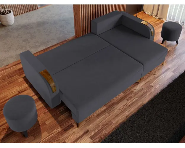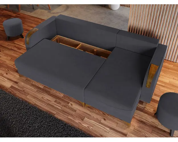 Coltar Londa Gri Inchis Coltar Londa Gri Inchis combina stilul si confortul, fiind alegerea potrivita pentru locuinta dumneavoastra. Picioarele si insertiile de culoarea lemnului de pe brate completeaza eleganta acestui coltar. Pe langa aspect, ofera confort prin cele 3 perne detasabile, cat si prin faptul ca se poate transforma rapid intr-un pat ce are lada de depozitare dedesubt. Este recomandat atat pentru incaperi medii, cat si mari si are dimensiunile de: 245 cm lungime, 140 cm latime, 95 cm inaltime totala . Dupa extindere, obtineti un spatiu pentru odihna si relaxare, cu suprafata utila 210 x 140 cm . Este tapitat cu o stofa de calitate uni pe diverse culori. Atentie: Pretul afisat nu include alte accesorii sau obiecte de decor. Taburetele si draperiile se pot achizitiona optional. Livrare gratuita si rapida, 4-10 zile lucratoare prin flota proprie Suntem producatori de tapiterii, fara intermediari Toate piesele de tapiterii au o garantie de 2 ani Sezutul si extensia coltarului sunt pe relaxa (arcuri elicoidale si poliuretan) . Scheletul este rezistent, realizat pe structura solida de fag si pal. Extensia este de tip Doppelliege ce prezinta un sistem actionat prin role, astfel ca partea de sezut se trage si permite partii de spatar sa gliseze spre partea din fata si sa se pozitioneze orizontal. Coltar Londa Gri Inchis se incadreaza cu usurinta in majoritatea locuintelor indiferent de stilul acestora. Puteti alege din mai multe culori pentru stofa. Produsele disponibile le puteti vedea aici Modele Londa . Dimensiuni Coltar Londa Lungime: 245 cm Latime: 140 cm Lungime intre brate: 210 cm Inaltime sezut: 44 cm Inaltime: 95 cm Adancime sezut cu perne: 55 cm Adancime sezut fara perne: 80 cm Adancime selong cu perne: 100 cm Adancime selong fara perne: 120 cm Latime sezlon 72 cm Inaltime picioare: 10 cm Dimensiuni extins Lungime extins: 210 cm Adancime extins: 140 cm Tapiterie Coltar Londa Gri Inchis Tapiteria produsului este din stofa Gri Inchis. Nuanta acestui produs nu este pretentioasa, mascheaza eventualele evenimente neplacute prin care se poate murdari sau pata si se integreaza perfect in majoritatea locuintelor. Intretinere: se recomanda ca praful sa se stearga cu un material textil moale (finet) umed si sa nu se curete cu agenti chimici (diluant, acetona). Imaginile sunt cu titlu de prezentare si pot avea mici diferente de nuante in functie de display. Dimensiunile sunt exprimate in centimetri si pot oscila intre ± 50 mm. Produsul cu denumirea Coltar Londa Gri Inchis face parte din brandul Mobila laguna, se afla in categoria Canapele extensibile si subcategoria