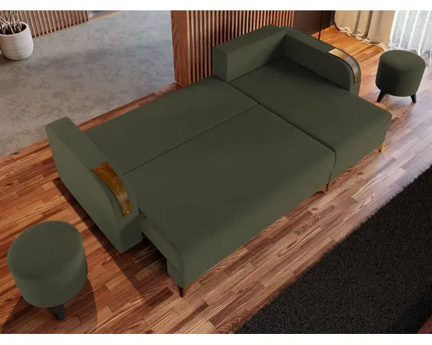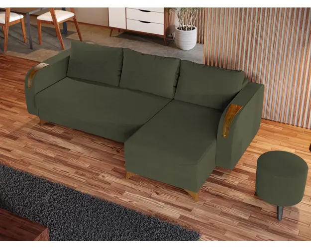 Coltar Londa Verde Coltar Londa Verde combina stilul si confortul, fiind alegerea potrivita pentru locuinta dumneavoastra. Picioarele si insertiile de culoarea lemnului de pe brate completeaza eleganta acestui coltar. Pe langa aspect, ofera confort prin cele 3 perne detasabile, cat si prin faptul ca se poate transforma rapid intr-un pat ce are lada de depozitare dedesubt. Este recomandat atat pentru incaperi medii, cat si mari si are dimensiunile de: 245 cm lungime, 140 cm latime, 95 cm inaltime totala . Dupa extindere, obtineti un spatiu pentru odihna si relaxare, cu suprafata utila 210 x 140 cm . Este tapitat cu o stofa de calitate uni pe diverse culori. Atentie: Pretul afisat nu include alte accesorii sau obiecte de decor. Taburetele si draperiile se pot achizitiona optional. Livrare gratuita si rapida, 4-10 zile lucratoare prin flota proprie Suntem producatori de tapiterii, fara intermediari Toate piesele de tapiterii au o garantie de 2 ani Sezutul si extensia coltarului sunt pe relaxa (arcuri elicoidale si poliuretan) . Scheletul este rezistent, realizat pe structura solida de fag si pal. Extensia este de tip Doppelliege ce prezinta un sistem actionat prin role, astfel ca partea de sezut se trage si permite partii de spatar sa gliseze spre partea din fata si sa se pozitioneze orizontal. Coltar Londa Verde se incadreaza cu usurinta in majoritatea locuintelor indiferent de stilul acestora. Puteti alege din mai multe culori pentru stofa. Produsele disponibile le puteti vedea aici Modele Londa . Dimensiuni Coltar Londa Lungime: 245 cm Latime: 140 cm Lungime intre brate: 210 cm Inaltime sezut: 44 cm Inaltime: 95 cm Adancime sezut cu perne: 55 cm Adancime sezut fara perne: 80 cm Adancime selong cu perne: 100 cm Adancime selong fara perne: 120 cm Latime sezlon 72 cm Inaltime picioare: 10 cm Dimensiuni extins Lungime extins: 210 cm Adancime extins: 140 cm Tapiterie Coltar Londa Verde Tapiteria produsului este din stofa Verde. Nuanta acestui produs nu este pretentioasa, mascheaza eventualele evenimente neplacute prin care se poate murdari sau pata si se integreaza perfect in majoritatea locuintelor. Intretinere: se recomanda ca praful sa se stearga cu un material textil moale (finet) umed si sa nu se curete cu agenti chimici (diluant, acetona). Imaginile sunt cu titlu de prezentare si pot avea mici diferente de nuante in functie de display. Dimensiunile sunt exprimate in centimetri si pot oscila intre ± 50 mm. Produsul cu denumirea Coltar Londa Verde face parte din brandul Mobila laguna, se afla in categoria Canapele extensibile si subcategoria