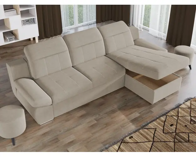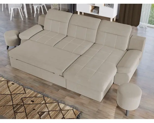 Coltar Mely Crem Avand un design modern si minimalist, Coltar Mely Crem imbina cu succes stilul si confortul, fiind incapator si comod. Spatarul coltarului prezinta trei tetiere reglabile , oferind relaxare completa si un confort sporit pe timp de zi. In plus, acesta este extensibil si se transforma rapid intr-un pat confortabil de 225 x 137 cm . Coltarul este prevazut cu lada pentru depozitare pozitionata sub sezlong, care poate fi accesata usor prin ridicarea partii superioare a acestuia. Picioarele argintii dau un plus de eleganta si stil oricarui living. Este potrivit pentru incaperi mari, avand dimensiunile de: 300 cm lungime, 180 cm latime, 105 cm inaltime totala . Este tapitat cu stofa de calitate pe diverse culori. Atentie: Pretul afisat nu include alte accesorii sau obiecte de decor. Taburetele, pernele deco si draperiile se pot achizitiona optional. Livrare gratuita si rapida, 4-10 zile lucratoare prin flota proprie Suntem producatori de tapiterii, fara intermediari Toate piesele de tapiterii au o garantie de 2 ani Sezutul si extensia coltarului sunt din poliuretan High Resilience . Scheletul este rezistent, realizat pe structura solida de fag si pal. Extensia de tip sertar este pozitionata sub sezutul coltarului. Se deschide ca un sertar, apoi se ridica salteaua din interiorul acestuia. Coltar Mely Crem se incadreaza cu usurinta in majoritatea locuintelor indiferent de stilul acestora. Puteti alege din mai multe culori pentru stofa. Produsele disponibile le puteti vedea aici Modele Mely . Dimensiuni Coltar Mely Lungime: 300 cm Latime: 180 cm Lungime intre brate: 225 cm Inaltime sezut: 44 cm Inaltime: 105 cm Adancime sezut: 64 cm Adancime selon 137 cm Latime sezlon 87 cm Lungime brate: 70 cm Dimensiuni extinsa Lungime extinsa: 225 cm Adancime extinsa: 137 cm Tapiterie Coltar Mely Crem Tapiteria produsului este din stofa Crem. Nuanta acestui produs nu este pretentioasa, mascheaza eventualele evenimente neplacute prin care se poate murdari sau pata si se integreaza perfect in majoritatea locuintelor. Intretinere: se recomanda ca praful sa se stearga cu un material textil moale (finet) umed si sa nu se curete cu agenti chimici (diluant, acetona). Imaginile sunt cu titlu de prezentare si pot avea mici diferente de nuante in functie de display. Dimensiunile sunt exprimate in centimetri si pot oscila intre ± 50 mm. Produsul cu denumirea Coltar Mely Crem face parte din brandul Mobila laguna, se afla in categoria Canapele extensibile si subcategoria