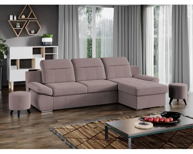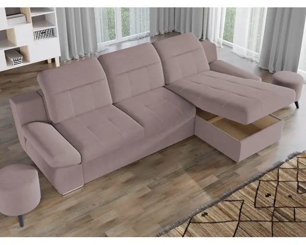 Coltar Mely Roze Avand un design modern si minimalist, Coltar Mely Roze imbina cu succes stilul si confortul, fiind incapator si comod. Spatarul coltarului prezinta trei tetiere reglabile , oferind relaxare completa si un confort sporit pe timp de zi. In plus, acesta este extensibil si se transforma rapid intr-un pat confortabil de 225 x 137 cm . Coltarul este prevazut cu lada pentru depozitare pozitionata sub sezlong, care poate fi accesata usor prin ridicarea partii superioare a acestuia. Picioarele argintii dau un plus de eleganta si stil oricarui living. Este potrivit pentru incaperi mari, avand dimensiunile de: 300 cm lungime, 180 cm latime, 105 cm inaltime totala . Este tapitat cu stofa de calitate pe diverse culori. Atentie: Pretul afisat nu include alte accesorii sau obiecte de decor. Taburetele, pernele deco si draperiile se pot achizitiona optional. Livrare gratuita si rapida, 4-10 zile lucratoare prin flota proprie Suntem producatori de tapiterii, fara intermediari Toate piesele de tapiterii au o garantie de 2 ani Sezutul si extensia coltarului sunt din poliuretan High Resilience . Scheletul este rezistent, realizat pe structura solida de fag si pal. Extensia de tip sertar este pozitionata sub sezutul coltarului. Se deschide ca un sertar, apoi se ridica salteaua din interiorul acestuia. Coltar Mely Roze se incadreaza cu usurinta in majoritatea locuintelor indiferent de stilul acestora. Puteti alege din mai multe culori pentru stofa. Produsele disponibile le puteti vedea aici Modele Mely . Dimensiuni Coltar Mely Lungime: 300 cm Latime: 180 cm Lungime intre brate: 225 cm Inaltime sezut: 44 cm Inaltime: 105 cm Adancime sezut: 64 cm Adancime selon 137 cm Latime sezlon 87 cm Lungime brate: 70 cm Dimensiuni extinsa Lungime extinsa: 225 cm Adancime extinsa: 137 cm Tapiterie Coltar Mely Roze Tapiteria produsului este din stofa Roze. Nuanta acestui produs nu este pretentioasa, mascheaza eventualele evenimente neplacute prin care se poate murdari sau pata si se integreaza perfect in majoritatea locuintelor. Intretinere: se recomanda ca praful sa se stearga cu un material textil moale (finet) umed si sa nu se curete cu agenti chimici (diluant, acetona). Imaginile sunt cu titlu de prezentare si pot avea mici diferente de nuante in functie de display. Dimensiunile sunt exprimate in centimetri si pot oscila intre ± 50 mm. Produsul cu denumirea Coltar Mely Roze face parte din brandul Mobila laguna, se afla in categoria Canapele extensibile si subcategoria