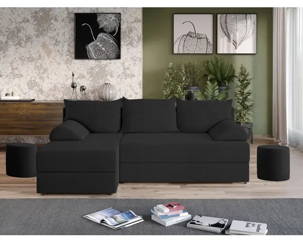 Coltar Mia Gri Antracit Chic, cu un design minimalist, Coltar Mia Gri Antracit creeaza un ambient cald, primitor si este ideal pentru un hol sau living de dimensiuni medii sau mari. Coltarul se transforma rapid si usor intr-un pat spatios de 210 x 135 cm prin tragerea sezutului si rabatarea spatarului. Lada integrata este ideala pentru depozitarea lenjeriei, a pernelor sau a paturii si pentru a pastra la indemana toate articolele frecvent utilizate. Cele 3 perne si bratele detasabile ofera un confort sporit in orice moment. Acesta are dimensiunea de: 210 cm lungime, 135 cm latime, 70 cm inaltime totala . Este tapitat cu stofa de calitate pe diverse culori. Atentie: Pretul afisat nu include alte accesorii sau obiecte de decor (pernele deco, tablouri, elemente de iluminat, covor etc.). Taburetele se pot achizitiona optional. Livrare gratuita si rapida, 4-10 zile lucratoare prin flota proprie Suntem producatori de tapiterii, fara intermediari Toate piesele de tapiterii au o garantie de 2 ani Sezutul si extensia coltarului sunt pe relaxa (arcuri elicoidale si poliuretan) . Scheletul este rezistent, realizat pe structura solida de fag si pal. Extensia este de tip Doppelliege, ce prezinta un sistem actionat prin role, astfel ca partea de sezut se trage si permite partii de spatar sa gliseze spre partea din fata si sa se pozitioneze orizontal. Coltar Mia Gri Antracit se incadreaza cu usurinta in majoritatea locuintelor indiferent de stilul acestora. Puteti alege din mai multe culori pentru stofa. Produsele disponibile le puteti vedea aici Modele Mia . Dimensiuni Coltar Mia Gri Antracit Lungime: 210 cm Latime: 135 cm Inaltime sezut: 40 cm Inaltime : 70 cm Adancime sezut: 80 cm Adancime sezlon 120 cm Dimensiuni extins Lungime extins: 210 cm Adancime extins: 135 cm Dimensiuni brate Inaltime brate: 15 cm Latime brate: 35 cm Lungime brate: 75 cm Tapiterie Coltar Mia Gri Antracit Tapiteria produsului este din stofa Gri Antracit . Nuanta acestui produs nu este pretentioasa, mascheaza eventualele evenimente neplacute prin care se poate murdari sau pata si se integreaza perfect in majoritatea locuintelor. Intretinere: se recomanda ca praful sa se stearga cu un material textil moale (finet) umed si sa nu se curete cu agenti chimici (diluant, acetona). Imaginile sunt cu titlu de prezentare si pot avea mici diferente de nuante in functie de display. Dimensiunile sunt exprimate in centimetri si pot oscila intre ± 50 mm. Produsul cu denumirea Coltar Mia Gri Antracit face parte din brandul Mobila laguna, se afla in categoria Canapele extensibile si subcategoria