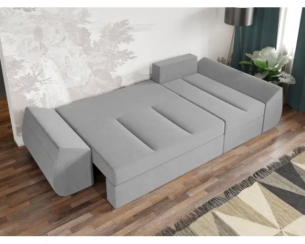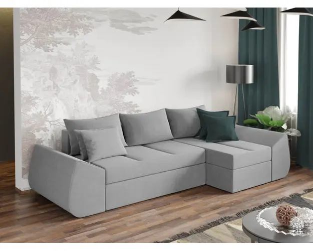 Coltar Milos Gri Deschis Coltar Milos Gri Deschis este un coltar extensibil cu lada, modern, confortabil , care iese in evidenta prin forma deosebita a bratelor . Ofera un confort sporit dat de pernele detasabile mari si mici , cat si utilitate prin posibilitatea de extindere si prin lada de depozitare , ideala pentru depozitarea lenjeriei sau a altor obiecte. Este recomandat atat pentru incaperi medii, cat si mari si are dimensiunile de: 290 cm lungime, 138 cm latime, 85 cm inaltime totala . Dupa extindere, obtineti un spatiu pentru odihna si relaxare, cu suprafata utila 210 x 138 cm . Este tapitat cu o stofa de calitate uni pe diverse culori. Atentie: Pretul afisat nu include alte accesorii sau obiecte de decor. Draperiile si pernele deco se pot achizitiona optional. Livrare gratuita si rapida, 4-10 zile lucratoare prin flota proprie Suntem producatori de tapiterii, fara intermediari Toate piesele de tapiterii au o garantie de 2 ani Sezutul si extensia coltarului sunt pe relaxa (arcuri elicoidale si poliuretan) . Scheletul este rezistent, realizat pe structura solida de fag si pal. Extensia este de tip Doppelliege ce prezinta un sistem actionat prin role, astfel ca partea de sezut se trage si permite partii de spatar sa gliseze spre partea din fata si sa se pozitioneze orizontal. Coltar Milos Gri Deschis se incadreaza cu usurinta in majoritatea locuintelor indiferent de stilul acestora. Puteti alege din mai multe culori pentru stofa. Produsele disponibile le puteti vedea aici Modele Milos . Videoclipul poate contine alta nuanta decat cea de pe pagina produsului, acesta avand ca scop prezentarea familiei pentru a se reda in detaliu aspectul materialului. Dimensiuni Coltar Milos Lungime: 290 cm Latime: 138 cm Lungime intre brate: 210 cm Inaltime sezut: 43 cm Inaltime: 85 cm Adancime sezut fara perne: 78 cm Adancime selong fara perne: 120 cm Dimensiuni extins Lungime extins: 210 cm Adancime extins: 138 cm Tapiterie Coltar Milos Gri Deschis Tapiteria produsului este din stofa Gri Deschis. Nuanta acestui produs nu este pretentioasa, mascheaza eventualele evenimente neplacute prin care se poate murdari sau pata si se integreaza perfect in majoritatea locuintelor. Intretinere: se recomanda ca praful sa se stearga cu un material textil moale (finet) umed si sa nu se curete cu agenti chimici (diluant, acetona). Imaginile sunt cu titlu de prezentare si pot avea mici diferente de nuante in functie de display. Dimensiunile sunt exprimate in centimetri si pot oscila intre ± 50 mm. Produsul cu denumirea Coltar Milos Gri Deschis face parte din brandul Mobila laguna, se afla in categoria Canapele extensibile si subcategoria