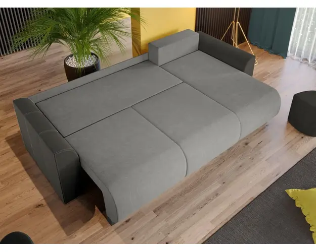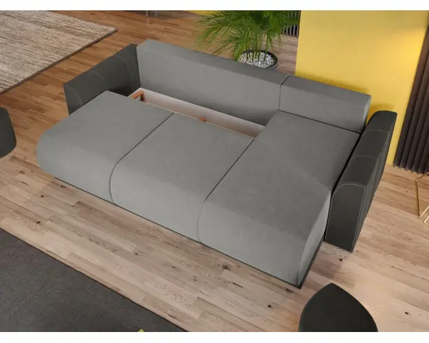 Coltar Nova Havana 6 / Olifante 13 Coltar Nova Havana 6 / Olifante 13 are un aspect aparte dat de liniile curbate de la sezut, brate si modelul pernelor. Spatarul are 3 perne detasabile cu 2 fete, o fata cu model si una in culoare uni. Coltarul se transforma rapid si usor intr-un pat spatios de 220 x 150 cm atunci cand scoti pernele si tragi sezutul in exterior coborand spatarul. Bratele si sezutul sunt rotunjite conferind un suport anatomic pentru maini si picioare. Te poti aseza astfel incat sa te simti bine si relaxat timp de multe ore, gratie pernelor detasabile pentru spatar, care ofera sustinere corpului tau exact in pozitia dorita. Acesta are dimensiunea de: 265 cm lungime, 155 cm latime, 87 cm inaltime totala . Este tapitat cu stofa de calitate pe diverse culori. Atentie: Pretul afisat nu include alte accesorii sau obiecte de decor. Taburetele, pernele deco si draperiile se pot achizitiona optional. Livrare gratuita si rapida, 4-10 zile lucratoare prin flota proprie Suntem producatori de tapiterii, fara intermediari Toate piesele de tapiterii au o garantie de 2 ani Sezutul si extensia coltarului sunt pe relaxa (arcuri elicoidale si poliuretan) . Scheletul este rezistent, realizat pe structura solida de fag si pal. Extensia este de tip Doppelliege, ce prezinta un sistem actionat prin role, astfel ca partea de sezut se trage si permite partii de spatar sa gliseze spre partea din fata si sa se pozitioneze orizontal. Coltar Nova Havana 6 / Olifante 13 se incadreaza cu usurinta in majoritatea locuintelor indiferent de stilul acestora. Puteti alege din mai multe culori pentru stofa. Produsele disponibile le puteti vedea aici Modele Nova . Dimensiuni Coltar Nova Lungime: 265 cm Latime: 155 cm Lungime intre brate: 220 cm Inaltime sezut: 46 cm Inaltime : 87 cm Adancime sezut: 85 cm Adancime selon 130 cm Latime sezlon 70 cm Dimensiuni extins Lungime extins: 220 cm Adancime extins: 150 cm Dimensiuni brate Inaltime brate: 63 cm Lungime brate: 96 cm Tapiterie Coltar Nova Havana 6 / Olifante 13 Tapiteria produsului este din stofa Havana 6 pe sezut si Olifante 13 pe brate . Nuantele acestui produs nu sunt pretentioase, mascheaza eventualele evenimente neplacute prin care se pot murdari sau pata si se integreaza perfect in majoritatea locuintelor. Intretinere: se recomanda ca praful sa se stearga cu un material textil moale (finet) umed si sa nu se curete cu agenti chimici (diluant, acetona). Imaginile sunt cu titlu de prezentare si pot avea mici diferente de nuante in functie de display. Dimensiunile sunt exprimate in centimetri si pot oscila intre ± 50 mm. Produsul cu denumirea Coltar Nova Havana 6 / Olifante 13 face parte din brandul Mobila laguna, se afla in categoria Canapele extensibile si subcategoria