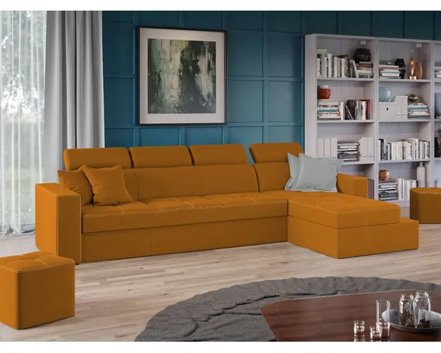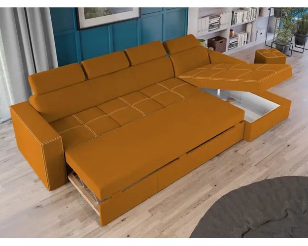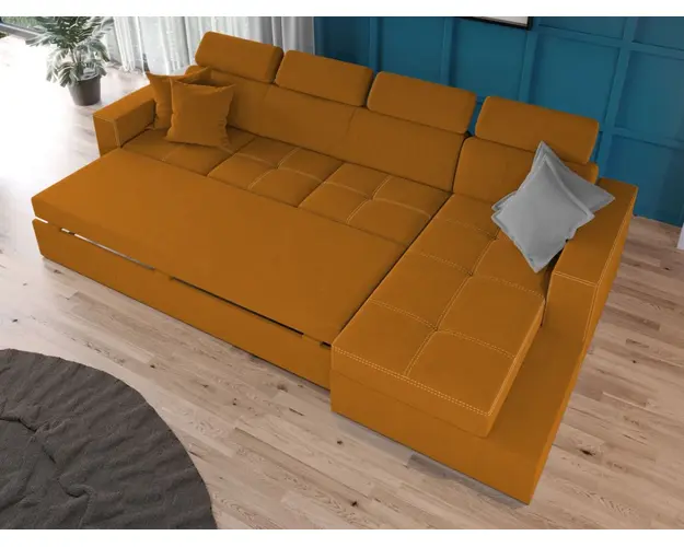 Coltar Paloma + 1 loc Portocaliu Coltar Paloma + 1 loc Portocaliu are un design modern, contemporan. Acesta este usor de integrat in orice decor, datorita liniilor moderne ale acestuia, iar cusaturile contrastante ofera un aspect sofisticat. Tetierele, elementul surpriza al acestui coltar, pe langa aspectul aparte, au si un mecanism de reglare pe inaltime pentru un confort sporit. Se poate transforma intr-un pat confortabil in doar cateva minute si este prevazut cu lada pentru depozitare. Este recomandat atat pentru incaperi mici sau mari si are dimensiunea de: 300 cm lungime, 164 cm latime, 96 cm inaltime totala . Dupa extindere, obtineti un spatiu pentru odihna si relaxare, cu suprafata utila 256 x 125 cm . Este tapitat cu stofa de calitate pe diverse culori. Atentie: Pretul afisat nu include alte accesorii sau obiecte de decor. Taburetele, pernele deco si draperiile se pot achizitiona optional. Livrare gratuita si rapida, 4-10 zile lucratoare prin flota proprie Suntem producatori de tapiterii, fara intermediari Toate piesele de tapiterii au o garantie de 2 ani Sezutul este pe relaxa (arcuri elicoidale si poliuretan) si extensia este din poliuretan. Scheletul este rezistent, realizat pe structura solida de fag si pal. Extensia de tip sertar este pozitionata sub sezutul coltarului. Se deschide ca un sertar, apoi se ridica salteaua din interiorul acestuia. Coltar Paloma + 1 loc Portocaliu se incadreaza cu usurinta in majoritatea locuintelor indiferent de stilul acestora. Puteti alege din mai multe culori pentru stofa. Produsele disponibile le puteti vedea aici Modele Paloma . Dimensiuni Coltar Paloma + 1 loc Portocaliu Lungime: 300 cm Latime: 164 cm Lungime intre brate: 256 cm Inaltime sezut: 44 cm Adancime sezut: 56 cm Inaltime cu tetiere: 96 cm Inaltime fara tetiere: 70 cm Dimensiuni extinsa Lungime extinsa: 256 cm Adancime extinsa: 125 cm Dimensiuni brate Inaltime brate: 60 cm Lungime brate: 92 cm Tapiterie Coltar Paloma + 1 loc Portocaliu Tapiteria produsului este din stofa Portocalie. Nuanta acestui produs nu este pretentioasa, mascheaza eventualele evenimente neplacute prin care se poate murdari sau pata si se integreaza perfect in majoritatea locuintelor. Intretinere: se recomanda ca praful sa se stearga cu un material textil moale (finet) umed si sa nu se curete cu agenti chimici (diluant, acetona). Imaginile sunt cu titlu de prezentare si pot avea mici diferente de nuante in functie de display. Dimensiunile sunt exprimate in centimetri si pot oscila intre ± 50 mm. Produsul cu denumirea Coltar Paloma + 1 loc Portocaliu face parte din brandul Mobila laguna, se afla in categoria Incalzitoare instant si subcategoria