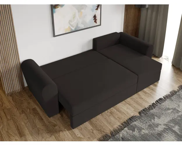 Coltar Word Maro Coltar Word Maro este un coltar extensibil cu lada pentru living clasic si usor elegant . Combina stilul si confortul, fiind alegerea potrivita pentru locuinta dumneavoastra. Bratele rotunjite confera, pe langa un aspect deosebit, si o sustinere placuta, iar cele 3 perne sunt detasabile. Lada incorporata este ideala pentru depozitarea lenjeriei sau a altor obiecte. Este recomandat atat pentru incaperi medii, cat si mari si are dimensiunile de: 258 cm lungime, 140 cm latime, 85 cm inaltime totala . Dupa extindere, obtineti un spatiu pentru odihna si relaxare, cu suprafata utila 210 x 140 cm . Este tapitat cu o stofa de calitate uni pe diverse culori. Atentie: Pretul afisat nu include alte accesorii sau obiecte de decor. Draperiile si pernele deco se pot achizitiona optional. Livrare gratuita si rapida, 4-10 zile lucratoare prin flota proprie Suntem producatori de tapiterii, fara intermediari Toate piesele de tapiterii au o garantie de 2 ani Sezutul si extensia coltarului sunt pe relaxa (arcuri elicoidale si poliuretan) . Scheletul este rezistent, realizat pe structura solida de fag si pal. Extensia este de tip Doppelliege ce prezinta un sistem actionat prin role, astfel ca partea de sezut se trage si permite partii de spatar sa gliseze spre partea din fata si sa se pozitioneze orizontal. Coltar Word Maro se incadreaza cu usurinta in majoritatea locuintelor indiferent de stilul acestora. Puteti alege din mai multe culori pentru stofa. Produsele disponibile le puteti vedea aici Modele Word . Videoclipul poate contine alta nuanta decat cea de pe pagina produsului, acesta avand ca scop prezentarea familiei pentru a se reda in detaliu aspectul materialului. Dimensiuni Coltar Word Lungime: 258 cm Latime: 140 cm Lungime intre brate: 210 cm Inaltime sezut: 43 cm Inaltime: 85 cm Adancime sezut cu perne: 56 cm Adancime sezut fara perne: 80 cm Adancime selong cu perne: 96 cm Adancime selong fara perne: 120 cm Latime sezlon 72 cm Dimensiuni extins Lungime extins: 210 cm Adancime extins: 140 cm Tapiterie Coltar Word Maro Tapiteria produsului este din stofa Maro. Nuanta acestui produs nu este pretentioasa, mascheaza eventualele evenimente neplacute prin care se poate murdari sau pata si se integreaza perfect in majoritatea locuintelor. Intretinere: se recomanda ca praful sa se stearga cu un material textil moale (finet) umed si sa nu se curete cu agenti chimici (diluant, acetona). Imaginile sunt cu titlu de prezentare si pot avea mici diferente de nuante in functie de display. Dimensiunile sunt exprimate in centimetri si pot oscila intre ± 50 mm. Produsul cu denumirea Coltar Word Maro face parte din brandul Mobila laguna, se afla in categoria Canapele extensibile si subcategoria