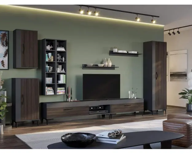 Corp Inferior Azur Ideala pentru living, sufragerie sau chiar dormitor sau hol, mobila Corp Inferior Azur are un spatiu de depozitare cu usa compartimentat pe jumatate de o etajera, unde puteti pune obiecte ce nu doriti sa se vada. Poate fi folosit ca un corp unic sau combinat cu alte corpuri din familia de mobila pentru sufragerie Azur . Latime: 48 cm Adancime: 33.6 cm Inaltime: 96.8 cm Inaltime picioare 12cm, este inclusa in dimensiunile corpului. Culoarea principala este Gri Antracit, iar in combinatie cu finisajul Nuc, cu manerul si picioarele negre denota o eleganta si un rafinament aparte. DESCARCA SCHITA MONTAJ Pretul afisat nu include alte accesorii sau obiecte de decor (TV, tablouri, elemente de iluminat, covor etc.) Dimensiunile sunt exprimate in cm si pot oscila intre ± 10 mm. Produsul se livreaza demontat si este insotit de accesorii si instructiuni de asamblare. Corp Inferior Azur Livrare rapida, 4-10 zile lucratoare prin flota proprie Suntem producatori de mobilier, fara intermediari Toate piesele de mobilier au o garantie de 2 ani Corp Inferior Azur face parte din familia de mobila pentru sufragerie / living Azur . Aceasta colectie este alcatuita din mai multe module, care, prin combinatiile de materiale si culori, denota o eleganta si un rafinament aparte. Puteti alege direct din configuratiile realizate de noi sau, daca doriti, puteti creea singuri propria configuratie de living combinand corpurile de mobila astfel incat sa se potriveasca perfect in spatiul dorit. Corpurile din gama Living Azur sunt construite din PAL melaminat de 16mm cu finisaj Gri Antracit si Nuc care, impreuna cu manerele si picioarele negre , creeaza un ambient primitor si o atmosfera placuta. Cantul aplicat este unul de 0,6 care le permite muchiilor sa fie placute la atingere. Produsul cu denumirea Corp Inferior Azur face parte din brandul Mobila laguna, se afla in categoria Mobila living si sufragerii si subcategoria
