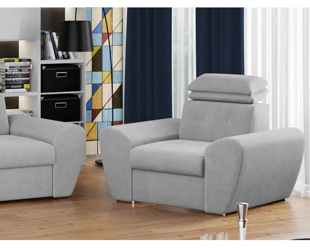 Fotoliu Barini Gri Deschis Fotoliu Barini Gri Deschis are un design modern , cu forme rotunjite. Tetiera reglabila in mai multe trepte asigura confortul necesar in momentele de relaxare, sustinand capul exact in pozitia dorita. Picioarele argintii si butonii de pe sezut si de pe spatar confera eleganta acestui fotoliu.Are dimensiunile de: 116 cm lungime, 93 cm latime, 90 cm inaltime totala . Este tapitat cu stofa de calitate pe diverse culori. Atentie: Pretul afisat nu include alte accesorii sau obiecte de decor (pernele deco, tablouri, elemente de iluminat, covor etc.). Taburetele se pot achizitiona optional. Livrare gratuita si rapida, 4-10 zile lucratoare prin flota proprie Suntem producatori de tapiterii, fara intermediari, Toate piesele de tapiterii au o garantie de 2 ani Ofera fermitatea optima, dar si confortul dorit prin sezutul fotoliului care este din arcuri sinusoidale si poliuretan . Scheletul este rezistent, realizat pe structura solida de fag si pal . Fotoliu Barini Gri Deschis se incadreaza cu usurinta in majoritatea locuintelor indiferent de stilul acestora. Puteti alege din mai multe culori pentru stofa. Produsele disponibile le puteti vedea aici Modele Barini . Videoclipul poate contine alta nuanta decat cea de pe pagina produsului, acesta avand ca scop prezentarea familiei pentru a se reda in detaliu aspectul materialului. Dimensiuni Fotoliu Barini Latime: 116 cm Adancime: 93 cm Inaltime: 90 cm Inaltime fara tetiera: 73 cm Latime intre brate: 60 cm Inaltime sezut: 45 cm Inaltime spatar cu tetiera: 60 cm Inaltime spatar fara tetiera: 34 cm Adancime sezut: 60 cm Lungime brate: 93 cm Tapiterie Fotoliu Barini Gri Deschis Tapiteria produsului este din stofa Gri Deschis. Nuanta acestui produs nu este pretentioasa, mascheaza eventualele evenimente neplacute prin care se poate murdari sau pata si se integreaza perfect in majoritatea locuintelor. Intretinere: se recomanda ca praful sa se stearga cu un material textil moale (finet) umed si sa nu se curete cu agenti chimici (diluant, acetona). Imaginile sunt cu titlu de prezentare si pot avea mici diferente de nuante in functie de display. Dimensiunile sunt exprimate in centimetri si pot oscila intre ± 50 mm. Produsul cu denumirea Fotoliu Barini Gri Deschis face parte din brandul Mobila laguna, se afla in categoria Fotolii si subcategoria