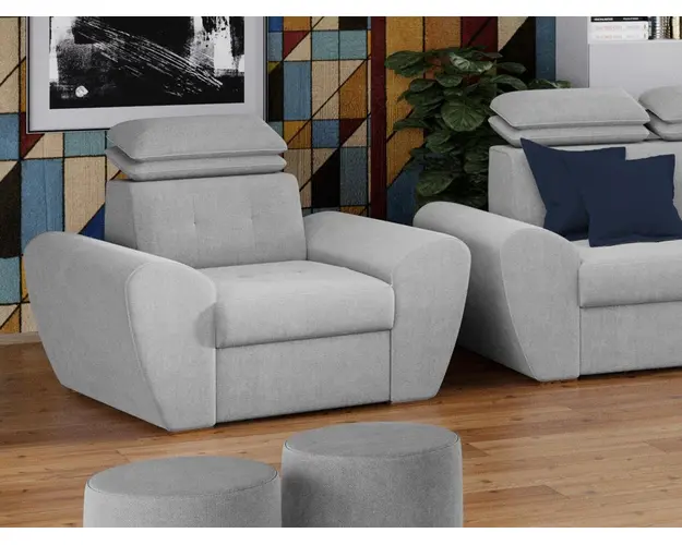 Fotoliu Barini Gri Deschis Fotoliu Barini Gri Deschis are un design modern , cu forme rotunjite. Tetiera reglabila in mai multe trepte asigura confortul necesar in momentele de relaxare, sustinand capul exact in pozitia dorita. Picioarele argintii si butonii de pe sezut si de pe spatar confera eleganta acestui fotoliu.Are dimensiunile de: 116 cm lungime, 93 cm latime, 90 cm inaltime totala . Este tapitat cu stofa de calitate pe diverse culori. Atentie: Pretul afisat nu include alte accesorii sau obiecte de decor (pernele deco, tablouri, elemente de iluminat, covor etc.). Taburetele se pot achizitiona optional. Livrare gratuita si rapida, 4-10 zile lucratoare prin flota proprie Suntem producatori de tapiterii, fara intermediari, Toate piesele de tapiterii au o garantie de 2 ani Ofera fermitatea optima, dar si confortul dorit prin sezutul fotoliului care este din arcuri sinusoidale si poliuretan . Scheletul este rezistent, realizat pe structura solida de fag si pal . Fotoliu Barini Gri Deschis se incadreaza cu usurinta in majoritatea locuintelor indiferent de stilul acestora. Puteti alege din mai multe culori pentru stofa. Produsele disponibile le puteti vedea aici Modele Barini . Videoclipul poate contine alta nuanta decat cea de pe pagina produsului, acesta avand ca scop prezentarea familiei pentru a se reda in detaliu aspectul materialului. Dimensiuni Fotoliu Barini Latime: 116 cm Adancime: 93 cm Inaltime: 90 cm Inaltime fara tetiera: 73 cm Latime intre brate: 60 cm Inaltime sezut: 45 cm Inaltime spatar cu tetiera: 60 cm Inaltime spatar fara tetiera: 34 cm Adancime sezut: 60 cm Lungime brate: 93 cm Tapiterie Fotoliu Barini Gri Deschis Tapiteria produsului este din stofa Gri Deschis. Nuanta acestui produs nu este pretentioasa, mascheaza eventualele evenimente neplacute prin care se poate murdari sau pata si se integreaza perfect in majoritatea locuintelor. Intretinere: se recomanda ca praful sa se stearga cu un material textil moale (finet) umed si sa nu se curete cu agenti chimici (diluant, acetona). Imaginile sunt cu titlu de prezentare si pot avea mici diferente de nuante in functie de display. Dimensiunile sunt exprimate in centimetri si pot oscila intre ± 50 mm. Produsul cu denumirea Fotoliu Barini Gri Deschis face parte din brandul Mobila laguna, se afla in categoria Fotolii si subcategoria