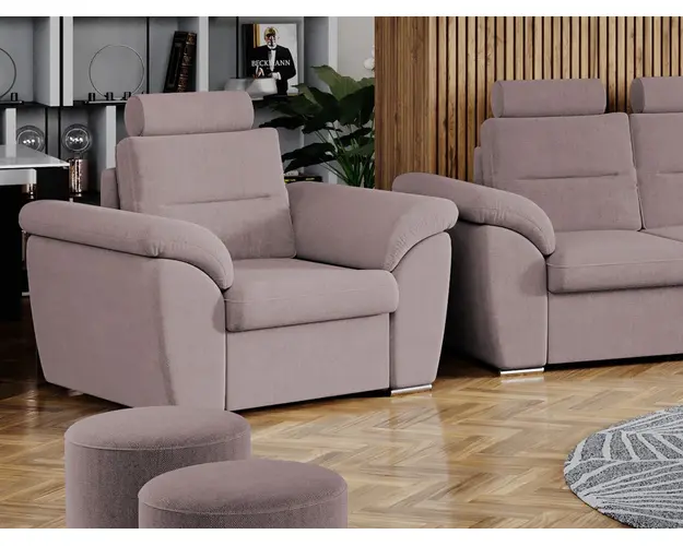 Fotoliu Biano Roze Fotoliu Biano Roze are un design modern , contemporan si un aspect impunator, caracterizat de forme rotunjite si simple. Poti avea parte de relaxare completa si un confort sporit, gratie tetierei reglabile , spatarului si bratelor care ofera sustinere corpului tau exact in pozitia dorita. Are dimensiunile de: 120 cm lungime, 90 cm latime, 105 cm inaltime totala . Este tapitat cu stofa de calitate pe diverse culori. Atentie: Pretul afisat nu include alte accesorii sau obiecte de decor (pernele deco, tablouri, elemente de iluminat, covor etc.). Taburetele se pot achizitiona optional. Livrare gratuita si rapida, 4-10 zile lucratoare prin flota proprie Suntem producatori de tapiterii, fara intermediari, Toate piesele de tapiterii au o garantie de 2 ani Ofera fermitatea optima, dar si confortul dorit prin sezutul fotoliului care este pe relaxa (arcuri elicoidale si poliuretan) . Scheletul este rezistent, realizat pe structura solida de fag si pal . Fotoliu Biano Roze se incadreaza cu usurinta in majoritatea locuintelor indiferent de stilul acestora. Puteti alege din mai multe culori pentru stofa. Produsele disponibile le puteti vedea aici Modele Biano . Dimensiuni Fotoliu Biano Latime: 120 cm Adancime: 90 cm Inaltime: 105 cm Latime intre brate: 58 cm Inaltime sezut: 45 cm Inaltime spatar cu tetiere: 65 cm Inaltime spatar fara tetiere: 50 cm Adancime sezut: 60 cm Lungime brate: 87 cm Tapiterie Fotoliu Biano Roze Tapiteria produsului este din stofa Roze. Nuanta acestui produs nu este pretentioasa, mascheaza eventualele evenimente neplacute prin care se poate murdari sau pata si se integreaza perfect in majoritatea locuintelor. Intretinere: se recomanda ca praful sa se stearga cu un material textil moale (finet) umed si sa nu se curete cu agenti chimici (diluant, acetona). Imaginile sunt cu titlu de prezentare si pot avea mici diferente de nuante in functie de display. Dimensiunile sunt exprimate in centimetri si pot oscila intre ± 50 mm. Produsul cu denumirea Fotoliu Biano Roze face parte din brandul Mobila laguna, se afla in categoria Fotolii si subcategoria