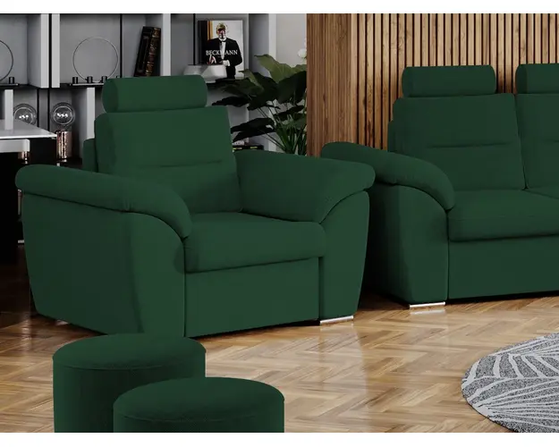 Fotoliu Biano Verde Fotoliu Biano Verde are un design modern , contemporan si un aspect impunator, caracterizat de forme rotunjite si simple. Poti avea parte de relaxare completa si un confort sporit, gratie tetierei reglabile , spatarului si bratelor care ofera sustinere corpului tau exact in pozitia dorita. Are dimensiunile de: 120 cm lungime, 90 cm latime, 105 cm inaltime totala . Este tapitat cu stofa de calitate pe diverse culori. Atentie: Pretul afisat nu include alte accesorii sau obiecte de decor (pernele deco, tablouri, elemente de iluminat, covor etc.). Taburetele se pot achizitiona optional. Livrare gratuita si rapida, 4-10 zile lucratoare prin flota proprie Suntem producatori de tapiterii, fara intermediari, Toate piesele de tapiterii au o garantie de 2 ani Ofera fermitatea optima, dar si confortul dorit prin sezutul fotoliului care este pe relaxa (arcuri elicoidale si poliuretan) . Scheletul este rezistent, realizat pe structura solida de fag si pal . Fotoliu Biano Verde se incadreaza cu usurinta in majoritatea locuintelor indiferent de stilul acestora. Puteti alege din mai multe culori pentru stofa. Produsele disponibile le puteti vedea aici Modele Biano . Dimensiuni Fotoliu Biano Latime: 120 cm Adancime: 90 cm Inaltime: 105 cm Latime intre brate: 58 cm Inaltime sezut: 45 cm Inaltime spatar cu tetiere: 65 cm Inaltime spatar fara tetiere: 50 cm Adancime sezut: 60 cm Lungime brate: 87 cm Tapiterie Fotoliu Biano Verde Tapiteria produsului este din stofa Verde. Nuanta acestui produs nu este pretentioasa, mascheaza eventualele evenimente neplacute prin care se poate murdari sau pata si se integreaza perfect in majoritatea locuintelor. Intretinere: se recomanda ca praful sa se stearga cu un material textil moale (finet) umed si sa nu se curete cu agenti chimici (diluant, acetona). Imaginile sunt cu titlu de prezentare si pot avea mici diferente de nuante in functie de display. Dimensiunile sunt exprimate in centimetri si pot oscila intre ± 50 mm. Produsul cu denumirea Fotoliu Biano Verde face parte din brandul Mobila laguna, se afla in categoria Fotolii si subcategoria