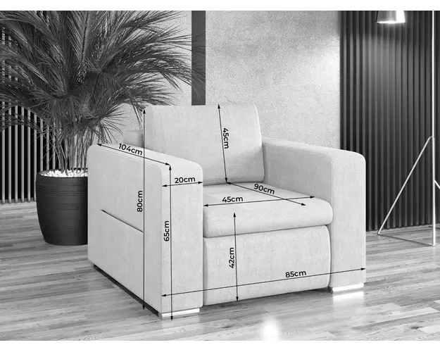 Fotoliu Ivy Roze Fotoliu Ivy Roze se remarca prin eleganta data de picioarele argintii. Pe langa aspectul sofisticat, fotoliul este caracterizat de confortul dat de bratele late si perna detasabila. Il poti plasa in camera de zi, dormitor, birou sau hol pentru a avea un loc comod si un aspect clasic. Fotoliul are dimensiunea de: 85 cm lungime, 104 cm latime, 80 cm inaltime totala. Este tapitat cu stofa de calitate pe diverse culori. Atentie: Pretul afisat nu include alte accesorii sau obiecte de decor (pernele deco, tablouri, elemente de iluminat, covor etc.). Taburetele se pot achizitiona optional. Livrare gratuita si rapida, 4-10 zile lucratoare prin flota proprie Suntem producatori de tapiterii, fara intermediari, Toate piesele de tapiterii au o garantie de 2 ani Ofera fermitatea optima, dar si confortul dorit prin sezutul fotoliului din poliuretan de inalta densitate . Scheletul este rezistent, realizat pe structura solida de fag si pal . Fotoliu Ivy Roze se incadreaza cu usurinta in majoritatea locuintelor indiferent de stilul acestora. Puteti alege din mai multe culori pentru stofa. Produsele disponibile le puteti vedea aici Modele Ivy . Dimensiuni Fotoliu Ivy Latime: 85 cm Adancime: 104 cm Inaltime: 80 cm Latime intre brate: 45 cm Adancime sezut: 90 cm Inaltime sezut: 42 cm Inaltime perna: 45 cm Dimensiuni brate Inaltime brate: 65 cm Lungime brate: 104 cm Grosime brate: 20 cm Tapiterie Fotoliu Ivy Tapiteria produsului este din stofa Roze . Nuanta acestui produs nu este pretentioasa, mascheaza eventualele evenimente neplacute prin care se poate murdari sau pata si se integreaza perfect in majoritatea locuintelor. Intretinere: se recomanda ca praful sa se stearga cu un material textil moale (finet) umed si sa nu se curete cu agenti chimici (diluant, acetona). Imaginile sunt cu titlu de prezentare si pot avea mici diferente de nuante in functie de display. Dimensiunile sunt exprimate in centimetri si pot oscila intre ± 50 mm. Produsul cu denumirea Fotoliu Ivy Roze face parte din brandul Mobila laguna, se afla in categoria Fotolii si subcategoria
