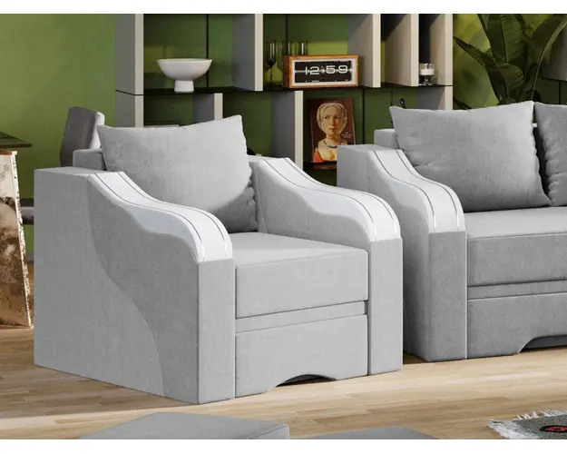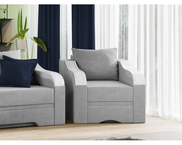 Fotoliu Julia Gri Deschis Fotoliu Julia Gri Deschis este un fotoliu clasic si solid. Ornamentele aplicate ale bratelor completeaza forma eleganta a acestuia. Te poti aseza astfel incat sa te simti bine si relaxat timp de multe ore, gratie pernei detasabile pentru spatar, care ofera sustinere corpului tau exact in pozitia dorita. Are dimensiunea de: 85 cm lungime, 87 cm latime, 80 cm inaltime totala . Este tapitat cu stofa de calitate pe diverse culori. Atentie: Pretul afisat nu include alte accesorii sau obiecte de decor (pernele deco, tablouri, elemente de iluminat, covor etc.). Taburetele se pot achizitiona optional. Livrare gratuita si rapida, 4-10 zile lucratoare prin flota proprie Suntem producatori de tapiterii, fara intermediari, Toate piesele de tapiterii au o garantie de 2 ani Ofera fermitatea optima, dar si confortul dorit prin sezutul fotoliului care este pe relaxa (arcuri elicoidale si poliuretan) . Scheletul este rezistent, realizat pe structura solida de fag si pal . Fotoliu Julia Gri Deschis se incadreaza cu usurinta in majoritatea locuintelor indiferent de stilul acestora. Puteti alege din mai multe culori pentru stofa. Produsele disponibile le puteti vedea aici Modele Julia . Dimensiuni Fotoliu Julia Latime: 85 cm Adancime: 87 cm Inaltime: 80 cm Latime intre brate: 58 cm Inaltime sezut: 48 cm Grosime brate: 12-13 cm Tapiterie Fotoliu Julia Gri Deschis Tapiteria produsului este din stofa Gri Deschis . Nuanta acestui produs nu este pretentioasa, mascheaza eventualele evenimente neplacute prin care se poate murdari sau pata si se integreaza perfect in majoritatea locuintelor. Intretinere: se recomanda ca praful sa se stearga cu un material textil moale (finet) umed si sa nu se curete cu agenti chimici (diluant, acetona). Imaginile sunt cu titlu de prezentare si pot avea mici diferente de nuante in functie de display. Dimensiunile sunt exprimate in centimetri si pot oscila intre ± 50 mm. Produsul cu denumirea Fotoliu Julia Gri Deschis face parte din brandul Mobila laguna, se afla in categoria Fotolii si subcategoria