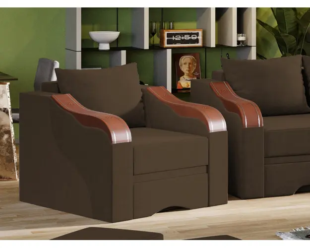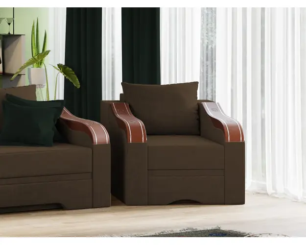 Fotoliu Julia Maro Fotoliu Julia Maro este un fotoliu clasic si solid. Ornamentele aplicate ale bratelor completeaza forma eleganta a acestuia. Te poti aseza astfel incat sa te simti bine si relaxat timp de multe ore, gratie pernei detasabile pentru spatar, care ofera sustinere corpului tau exact in pozitia dorita. Are dimensiunea de: 85 cm lungime, 87 cm latime, 80 cm inaltime totala . Este tapitat cu stofa de calitate pe diverse culori. Atentie: Pretul afisat nu include alte accesorii sau obiecte de decor (pernele deco, tablouri, elemente de iluminat, covor etc.). Taburetele se pot achizitiona optional. Livrare gratuita si rapida, 4-10 zile lucratoare prin flota proprie Suntem producatori de tapiterii, fara intermediari, Toate piesele de tapiterii au o garantie de 2 ani Ofera fermitatea optima, dar si confortul dorit prin sezutul fotoliului care este pe relaxa (arcuri elicoidale si poliuretan) . Scheletul este rezistent, realizat pe structura solida de fag si pal . Fotoliu Julia Maro se incadreaza cu usurinta in majoritatea locuintelor indiferent de stilul acestora. Puteti alege din mai multe culori pentru stofa. Produsele disponibile le puteti vedea aici Modele Julia . Dimensiuni Fotoliu Julia Latime: 85 cm Adancime: 87 cm Inaltime: 80 cm Latime intre brate: 58 cm Inaltime sezut: 48 cm Grosime brate: 12-13 cm Tapiterie Fotoliu Julia Maro Tapiteria produsului este din stofa Maro. Nuanta acestui produs nu este pretentioasa, mascheaza eventualele evenimente neplacute prin care se poate murdari sau pata si se integreaza perfect in majoritatea locuintelor. Intretinere: se recomanda ca praful sa se stearga cu un material textil moale (finet) umed si sa nu se curete cu agenti chimici (diluant, acetona). Imaginile sunt cu titlu de prezentare si pot avea mici diferente de nuante in functie de display. Dimensiunile sunt exprimate in centimetri si pot oscila intre ± 50 mm. Produsul cu denumirea Fotoliu Julia Maro face parte din brandul Mobila laguna, se afla in categoria Fotolii si subcategoria