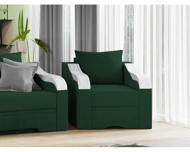 Fotoliu Julia Verde Fotoliu Julia Verde este un fotoliu clasic si solid. Ornamentele aplicate ale bratelor completeaza forma eleganta a acestuia. Te poti aseza astfel incat sa te simti bine si relaxat timp de multe ore, gratie pernei detasabile pentru spatar, care ofera sustinere corpului tau exact in pozitia dorita. Are dimensiunea de: 85 cm lungime, 87 cm latime, 80 cm inaltime totala . Este tapitat cu stofa de calitate pe diverse culori. Atentie: Pretul afisat nu include alte accesorii sau obiecte de decor (pernele deco, tablouri, elemente de iluminat, covor etc.). Taburetele se pot achizitiona optional. Livrare gratuita si rapida, 4-10 zile lucratoare prin flota proprie Suntem producatori de tapiterii, fara intermediari, Toate piesele de tapiterii au o garantie de 2 ani Ofera fermitatea optima, dar si confortul dorit prin sezutul fotoliului care este pe relaxa (arcuri elicoidale si poliuretan) . Scheletul este rezistent, realizat pe structura solida de fag si pal . Fotoliu Julia Verde se incadreaza cu usurinta in majoritatea locuintelor indiferent de stilul acestora. Puteti alege din mai multe culori pentru stofa. Produsele disponibile le puteti vedea aici Modele Julia . Dimensiuni Fotoliu Julia Latime: 85 cm Adancime: 87 cm Inaltime: 80 cm Latime intre brate: 58 cm Inaltime sezut: 48 cm Grosime brate: 12-13 cm Tapiterie Fotoliu Julia Verde Tapiteria produsului este din stofa Verde. Nuanta acestui produs nu este pretentioasa, mascheaza eventualele evenimente neplacute prin care se poate murdari sau pata si se integreaza perfect in majoritatea locuintelor. Intretinere: se recomanda ca praful sa se stearga cu un material textil moale (finet) umed si sa nu se curete cu agenti chimici (diluant, acetona). Imaginile sunt cu titlu de prezentare si pot avea mici diferente de nuante in functie de display. Dimensiunile sunt exprimate in centimetri si pot oscila intre ± 50 mm. Produsul cu denumirea Fotoliu Julia Verde face parte din brandul Mobila laguna, se afla in categoria Fotolii si subcategoria