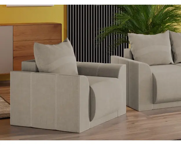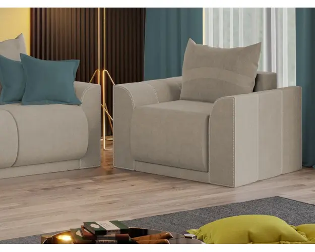 Fotoliu Nova Crem Fotoliu Nova Crem are un aspect aparte dat de liniile curbate de la sezut, brate si modelul pernei. Spatarul are o perna detasabila cu 2 fete, o fata cu model si una in culoare uni. Bratele si sezutul sunt rotunjite conferind un suport anatomic pentru maini si picioare. Te poti aseza astfel incat sa te simti bine si relaxat timp de multe ore, gratie pernei detasabile pentru spatar, care ofera sustinere corpului tau exact in pozitia dorita. Acesta are dimensiunea de: 88 cm lungime, 106 cm latime, 87 cm inaltime totala . Este tapitat cu stofa de calitate pe diverse culori. Atentie: Pretul afisat nu include alte accesorii sau obiecte de decor (pernele deco, tablouri, elemente de iluminat, covor etc.). Taburetele se pot achizitiona optional. Livrare gratuita si rapida, 4-10 zile lucratoare prin flota proprie Suntem producatori de tapiterii, fara intermediari, Toate piesele de tapiterii au o garantie de 2 ani Ofera fermitatea optima, dar si confortul dorit prin sezutul fotoliului care este pe relaxa (arcuri elicoidale si poliuretan) . Scheletul este rezistent, realizat pe structura solida de fag si pal . Fotoliu Nova Crem se incadreaza cu usurinta in majoritatea locuintelor indiferent de stilul acestora. Puteti alege din mai multe culori pentru stofa. Produsele disponibile le puteti vedea aici Modele Nova . Dimensiuni Fotoliu Nova Latime: 88 cm Adancime: 106 cm Inaltime: 87 cm Latime intre brate: 48 cm Adancime sezut: 85 cm Inaltime sezut: 46 cm Inaltime perna: 45 cm Dimensiuni brate Inaltime brate: 63 cm Lungime brate: 106 cm Grosime brate: 20 cm Tapiterie Fotoliu Nova Crem Tapiteria produsului este din stofa Crem. Nuanta acestui produs nu este pretentioasa, mascheaza eventualele evenimente neplacute prin care se poate murdari sau pata si se integreaza perfect in majoritatea locuintelor. Intretinere: se recomanda ca praful sa se stearga cu un material textil moale (finet) umed si sa nu se curete cu agenti chimici (diluant, acetona). Imaginile sunt cu titlu de prezentare si pot avea mici diferente de nuante in functie de display. Dimensiunile sunt exprimate in centimetri si pot oscila intre ± 50 mm. Produsul cu denumirea Fotoliu Nova Crem face parte din brandul Mobila laguna, se afla in categoria Fotolii si subcategoria