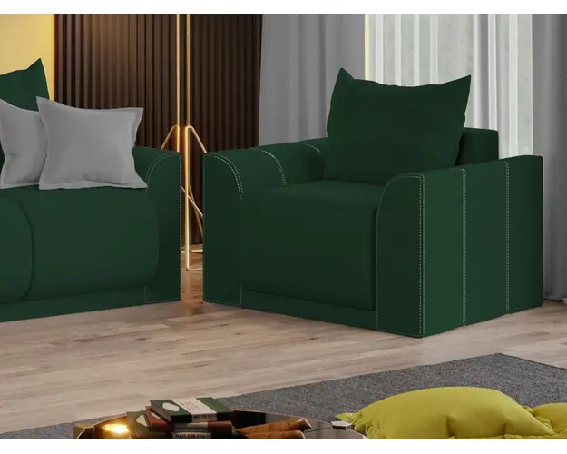 Fotoliu Nova Verde Fotoliu Nova Verde are un aspect aparte dat de liniile curbate de la sezut, brate si modelul pernei. Spatarul are o perna detasabila cu 2 fete, o fata cu model si una in culoare uni. Bratele si sezutul sunt rotunjite conferind un suport anatomic pentru maini si picioare. Te poti aseza astfel incat sa te simti bine si relaxat timp de multe ore, gratie pernei detasabile pentru spatar, care ofera sustinere corpului tau exact in pozitia dorita. Acesta are dimensiunea de: 88 cm lungime, 106 cm latime, 87 cm inaltime totala . Este tapitat cu stofa de calitate pe diverse culori. Atentie: Pretul afisat nu include alte accesorii sau obiecte de decor (pernele deco, tablouri, elemente de iluminat, covor etc.). Taburetele se pot achizitiona optional. Livrare gratuita si rapida, 4-10 zile lucratoare prin flota proprie Suntem producatori de tapiterii, fara intermediari, Toate piesele de tapiterii au o garantie de 2 ani Ofera fermitatea optima, dar si confortul dorit prin sezutul fotoliului care este pe relaxa (arcuri elicoidale si poliuretan) . Scheletul este rezistent, realizat pe structura solida de fag si pal . Fotoliu Nova Verde se incadreaza cu usurinta in majoritatea locuintelor indiferent de stilul acestora. Puteti alege din mai multe culori pentru stofa. Produsele disponibile le puteti vedea aici Modele Nova . Dimensiuni Fotoliu Nova Latime: 88 cm Adancime: 106 cm Inaltime: 87 cm Latime intre brate: 48 cm Adancime sezut: 85 cm Inaltime sezut: 46 cm Inaltime perna: 45 cm Dimensiuni brate Inaltime brate: 63 cm Lungime brate: 106 cm Grosime brate: 20 cm Tapiterie Fotoliu Nova Verde Tapiteria produsului este din stofa Verde. Nuanta acestui produs nu este pretentioasa, mascheaza eventualele evenimente neplacute prin care se poate murdari sau pata si se integreaza perfect in majoritatea locuintelor. Intretinere: se recomanda ca praful sa se stearga cu un material textil moale (finet) umed si sa nu se curete cu agenti chimici (diluant, acetona). Imaginile sunt cu titlu de prezentare si pot avea mici diferente de nuante in functie de display. Dimensiunile sunt exprimate in centimetri si pot oscila intre ± 50 mm. Produsul cu denumirea Fotoliu Nova Verde face parte din brandul Mobila laguna, se afla in categoria Fotolii si subcategoria