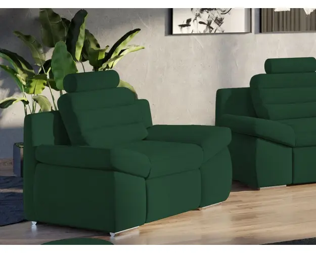 Fotoliu Quinn Verde Incapator si foarte confortabil, Fotoliu Quinn Verde este alegerea potrivita in materie de mobilier si de amenajarea casei, fiind usor de integrat in orice incapere. Pe langa nivelul de confort pe care il ofera datorita suportului spatarului si al tetierei, fotoliul este caracterizat de formele sale moderne si elegante. Te poti relaxa si rasfata dupa o zi lunga pe sezutul sau comod, acesta avand dimensiunea de: 130 cm lungime, 100 cm latime, 105 cm inaltime totala . Este tapitat cu stofa de calitate pe diverse culori. Atentie: Pretul afisat nu include alte accesorii sau obiecte de decor (pernele deco, tablouri, elemente de iluminat, covor etc.). Taburetele se pot achizitiona optional. Livrare gratuita si rapida, 4-10 zile lucratoare prin flota proprie Suntem producatori de tapiterii, fara intermediari, Toate piesele de tapiterii au o garantie de 2 ani Ofera fermitatea optima, dar si confortul dorit prin sezutul fotoliului care este dinpoliuretan High Resilience. Scheletul este rezistent, realizat pe structura solida de fag si pal . Fotoliu Quinn Verde se incadreaza cu usurinta in majoritatea locuintelor indiferent de stilul acestora. Puteti alege din mai multe culori pentru stofa. Produsele disponibile le puteti vedea aici Modele Quinn . Dimensiuni Fotoliu Quinn Latime: 130 cm Adancime: 100 cm Inaltime: 105 cm Latime intre brate: 57 cm Adancime sezut: 60 cm Inaltime sezut: 52 cm Inaltime spatar: 48 cm Dimensiuni brate Inaltime brate: 60 cm Lungime brate: 70 cm Tapiterie Fotoliu Quinn Verde Tapiteria produsului este din stofa Verde. Nuanta acestui produs nu este pretentioasa, mascheaza eventualele evenimente neplacute prin care se poate murdari sau pata si se integreaza perfect in majoritatea locuintelor. Intretinere: se recomanda ca praful sa se stearga cu un material textil moale (finet) umed si sa nu se curete cu agenti chimici (diluant, acetona). Imaginile sunt cu titlu de prezentare si pot avea mici diferente de nuante in functie de display. Dimensiunile sunt exprimate in centimetri si pot oscila intre ± 50 mm. Produsul cu denumirea Fotoliu Quinn Verde face parte din brandul Mobila laguna, se afla in categoria Fotolii si subcategoria
