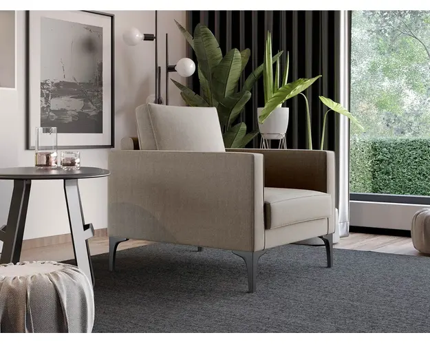 Fotoliu Rici Crem Calduros, primitor, placut si elegant, fotoliu Rici Crem creeaza un echilibru intre confort, functionalitate si aspect. Puteti alege din mai multe culori pentru stofa, produsele disponibile le puteti vedea aici Modele Rici . Livrare gratuita si rapida, 4-10 zile lucratoare prin flota proprie Suntem producatori de tapiterii, fara intermediari, garantie 2 ani Atentie: Picioarele necesita montaj, acestea nu vin montate direct pe produs pentru a fi protejate la transport. DESCARCA SCHITA DE MONTAJ Ofera fermitatea optima, dar si confortul dorit prin: Sezutul cu arcuri sinusoidale peste care vine perna cu grosime de 11cm din burete Spatarul cu chinga rigida, lemn de fag , pal + mucava acoperite de burete si stofa peste care vine perna cu umplutura Brate din lemn de fag , pal + mucava acoperite de burete si stofa Fotoliul Rici Crem, inspirat din designul scandinav, creeaza o atmosfera linistitoare in camera. Il poti plasa in camera de zi, dormitor, birou sau hol pentru a avea un loc confortabil si un aspect clasic. Pernele de sezut si spatar sunt detasabile pentru a usura curatarea si aspirarea acestuia. Deasemenea picioarele negre inalte de 19cm pe langa rolul estetic ofera spatiul necesar pentru aspirare si circulearea aerului. Videoclipul contine alta nuanta decat cea de pe pagina produsului, acesta avand ca scop prezentarea familiei pentru a se reda in detaliu aspectul materialului. Dimensiuni Fotoliu Latime: 76cm Adancime: 85cm H spate cu picior fara perna: 68cm H spate cu picior si perna: 80cm H spate fara picior: 50cm H picior: 19cm H brat cu picior: 60cm H brat fara picior: 41cm Latime intre brate: 58cm Adancime sezut fara perna: 65cm Adancime sezut cu perna: 47cm H sezut cu picior: 42cm H sezut fara picior: 23cm Perna sezut grosime: 11cm Grosime brat: 9cm Perna spatar: 45 x 55cm Tapiterie Fotoliu Rici Crem Tapiteria produsului este din stofa Crem ce nu este pretentioasa, mascheaza eventualele evenimente neplacute prin care se poate murdari sau pata si se integreaza perfect in majoritatea locuintelor. Intretinere: se recomanda ca praful sa se stearga cu un material textil moale (finet) umed si sa nu se curete cu agenti chimici (diluant, acetona). Imaginile sunt cu titlu de prezentare si pot avea mici diferente de nuante in functie de display. Dimensiunile sunt exprimate in centimetri si pot oscila intre ± 50 mm. Produsul cu denumirea Fotoliu Rici Crem face parte din brandul Mobila laguna, se afla in categoria Fotolii si subcategoria