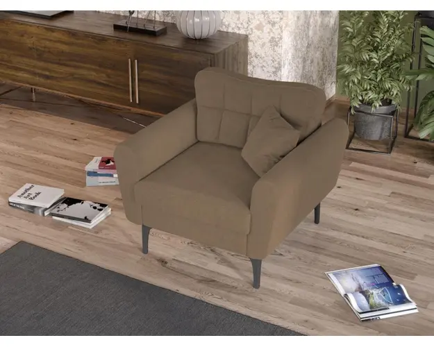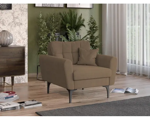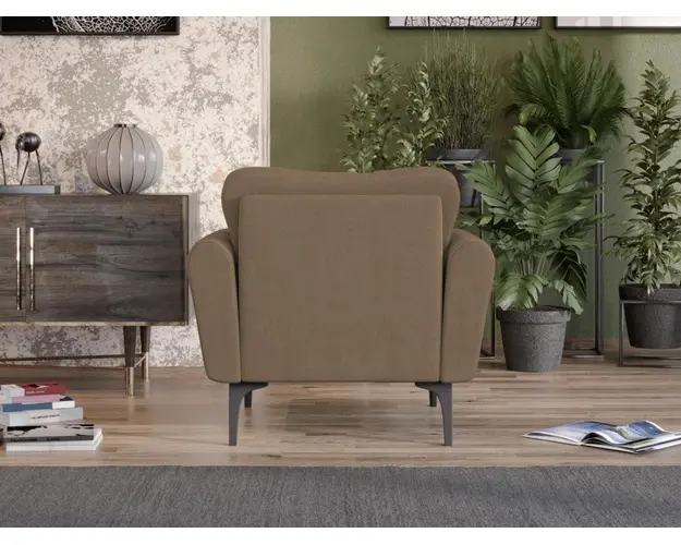 Fotoliu Vibe Cappuccino Cu dimensiuni generoase, Fotoliu Vibe Cappuccino ofera momente de liniste si relaxare de fiecare data. Elegant si impunator, il poti plasa in camera de zi, dormitor, birou sau hol pentru a avea un loc confortabil. Pernele de sezut si spatar sunt detasabile pentru a usura curatarea si aspirarea acestuia. Deasemenea picioarele negre inalte de 19cm pe langa rolul estetic ofera spatiul necesar pentru aspirare si circularea aerului. Bratele rotunjite ofera un suport anatomic, cat si functional desavarsit. Livrare gratuita si rapida, 4-10 zile lucratoare prin flota proprie Suntem producatori de tapiterii, fara intermediari, garantie 2 ani Atentie: Picioarele necesita montaj, acestea nu vin montate direct pe produs pentru a fi protejate la transport. DESCARCA SCHITA DE MONTAJ Ofera fermitatea optima, dar si confortul dorit prin: Sezutul cu arcuri sinusoidale, peste care vine perna cu grosime de 11cm din burete Spatarul din lemn de fag si mucava acoperite de burete si stofa peste care vine perna cu umplutura Brate din lemn de fag, pal + mucava acoperite de burete si stofa Fotoliu Vibe Cappuccino , cu aspect clasic si placut creeaza o atmosfera linistitoare in orice camera. Ofera relaxare desavarsita intr-un spatiu generos de sezut ce are 55x58cm, cat si prin perna de spatar + perna decorativa inclusa. Puteti alege din mai multe culori pentru stofa, produsele disponibile le puteti vedea aici Modele Vibe . Videoclipul contine alta nuanta decat cea de pe pagina produsului, acesta avand ca scop prezentarea familiei pentru a se reda in detaliu aspectul materialului. Dimensiuni Fotoliu Latime: 90cm Adancime: 85cm H spate cu picior fara perna: 74cm H spate cu picior si perna: 85cm H spate fara picior: 55cm H picior: 19cm H brat cu picior: 60cm H brat fara picior: 42cm Latime intre brate: 58cm Adancime sezut fara perna: 70cm Adancime sezut cu perna: 55cm H sezut cu picior: 43cm H sezut fara picior: 24cm Perna sezut grosime: 11cm Grosime brat: 14cm Perna spatar: 40 x 74cm Tapiterie Fotoliu Vibe Cappuccino Tapiteria produsului este din stofa Cappuccino ce nu este pretentioasa, mascheaza eventualele evenimente neplacute prin care se poate murdari sau pata si se integreaza perfect in majoritatea locuintelor. Intretinere: se recomanda ca praful sa se stearga cu un material textil moale (finet) umed si sa nu se curete cu agenti chimici (diluant, acetona). Imaginile sunt cu titlu de prezentare si pot avea mici diferente de nuante in functie de display. Dimensiunile sunt exprimate in centimetri si pot oscila intre ± 50 mm. Produsul cu denumirea Fotoliu Vibe Cappuccino face parte din brandul Mobila laguna, se afla in categoria Fotolii si subcategoria