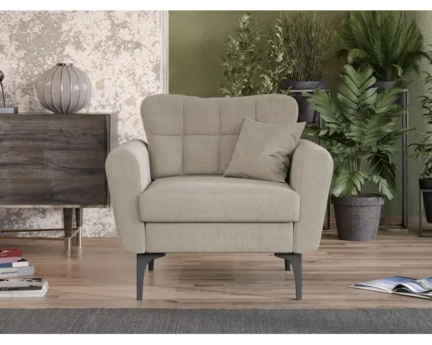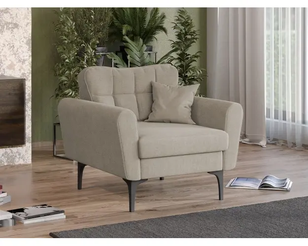 Fotoliu Vibe Crem Cu dimensiuni generoase, Fotoliu Vibe Crem ofera momente de liniste si relaxare de fiecare data. Elegant si impunator, il poti plasa in camera de zi, dormitor, birou sau hol pentru a avea un loc confortabil. Pernele de sezut si spatar sunt detasabile pentru a usura curatarea si aspirarea acestuia. Deasemenea picioarele negre inalte de 19cm pe langa rolul estetic ofera spatiul necesar pentru aspirare si circularea aerului. Bratele rotunjite ofera un suport anatomic, cat si functional desavarsit. Livrare gratuita si rapida, 4-10 zile lucratoare prin flota proprie Suntem producatori de tapiterii, fara intermediari, garantie 2 ani Atentie: Picioarele necesita montaj, acestea nu vin montate direct pe produs pentru a fi protejate la transport. DESCARCA SCHITA DE MONTAJ Ofera fermitatea optima, dar si confortul dorit prin: Sezutul cu arcuri sinusoidale, peste care vine perna cu grosime de 11cm din burete Spatarul din lemn de fag si mucava acoperite de burete si stofa peste care vine perna cu umplutura Brate din lemn de fag, pal + mucava acoperite de burete si stofa Fotoliu Vibe Crem , cu aspect clasic si placut creeaza o atmosfera linistitoare in orice camera. Ofera relaxare desavarsita intr-un spatiu generos de sezut ce are 55x58cm, cat si prin perna de spatar + perna decorativa inclusa. Puteti alege din mai multe culori pentru stofa, produsele disponibile le puteti vedea aici Modele Vibe . Dimensiuni Fotoliu Latime: 90cm Adancime: 85cm H spate cu picior fara perna: 74cm H spate cu picior si perna: 85cm H spate fara picior: 55cm H picior: 19cm H brat cu picior: 60cm H brat fara picior: 42cm Latime intre brate: 58cm Adancime sezut fara perna: 70cm Adancime sezut cu perna: 55cm H sezut cu picior: 43cm H sezut fara picior: 24cm Perna sezut grosime: 11cm Grosime brat: 14cm Perna spatar: 40 x 74cm Tapiterie Fotoliu Vibe Crem Tapiteria produsului este din stofa Crem ce nu este pretentioasa, mascheaza eventualele evenimente neplacute prin care se poate murdari sau pata si se integreaza perfect in majoritatea locuintelor. Intretinere: se recomanda ca praful sa se stearga cu un material textil moale (finet) umed si sa nu se curete cu agenti chimici (diluant, acetona). Imaginile sunt cu titlu de prezentare si pot avea mici diferente de nuante in functie de display. Dimensiunile sunt exprimate in centimetri si pot oscila intre ± 50 mm. Produsul cu denumirea Fotoliu Vibe Crem face parte din brandul Mobila laguna, se afla in categoria Fotolii si subcategoria