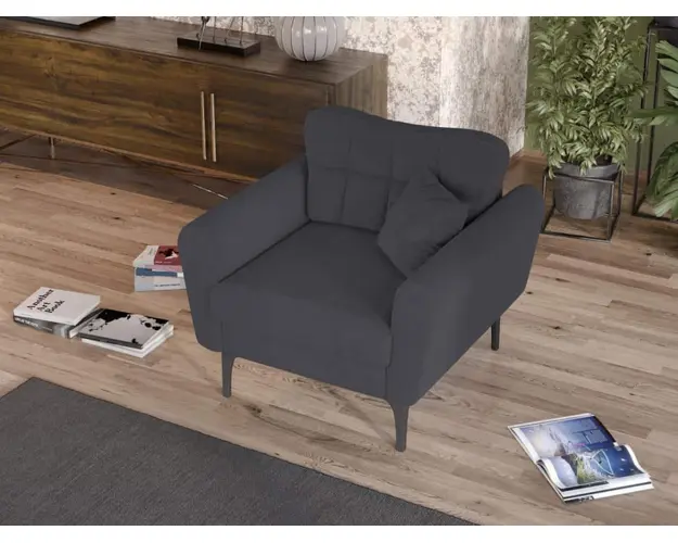 Fotoliu Vibe Gri Inchis Cu dimensiuni generoase, Fotoliu Vibe Gri Inchis ofera momente de liniste si relaxare de fiecare data. Elegant si impunator, il poti plasa in camera de zi, dormitor, birou sau hol pentru a avea un loc confortabil. Pernele de sezut si spatar sunt detasabile pentru a usura curatarea si aspirarea acestuia. Deasemenea picioarele negre inalte de 19cm pe langa rolul estetic ofera spatiul necesar pentru aspirare si circularea aerului. Bratele rotunjite ofera un suport anatomic, cat si functional desavarsit. Livrare gratuita si rapida, 4-10 zile lucratoare prin flota proprie Suntem producatori de tapiterii, fara intermediari, garantie 2 ani Atentie: Picioarele necesita montaj, acestea nu vin montate direct pe produs pentru a fi protejate la transport. DESCARCA SCHITA DE MONTAJ Ofera fermitatea optima, dar si confortul dorit prin: Sezutul cu arcuri sinusoidale, peste care vine perna cu grosime de 11cm din burete Spatarul din lemn de fag si mucava acoperite de burete si stofa peste care vine perna cu umplutura Brate din lemn de fag, pal si mucava acoperite de burete si stofa Fotoliu Vibe Gri Inchis , cu aspect clasic si placut creeaza o atmosfera linistitoare in orice camera. Ofera relaxare desavarsita intr-un spatiu generos de sezut ce are 55x58cm, cat si prin perna de spatar + perna decorativa inclusa. Puteti alege din mai multe culori pentru stofa, produsele disponibile le puteti vedea aici Modele Vibe . Dimensiuni Fotoliu Latime: 90cm Adancime: 85cm H spate cu picior fara perna: 74cm H spate cu picior si perna: 85cm H spate fara picior: 55cm H picior: 19cm H brat cu picior: 60cm H brat fara picior: 42cm Latime intre brate: 58cm Adancime sezut fara perna: 70cm Adancime sezut cu perna: 55cm H sezut cu picior: 43cm H sezut fara picior: 24cm Perna sezut grosime: 11cm Grosime brat: 14cm Perna spatar: 40 x 74cm Tapiterie Fotoliu Vibe Gri Inchis Tapiteria produsului este din stofa Gri Inchis ce nu este pretentioasa, mascheaza eventualele evenimente neplacute prin care se poate murdari sau pata si se integreaza perfect in majoritatea locuintelor. Intretinere: se recomanda ca praful sa se stearga cu un material textil moale (finet) umed si sa nu se curete cu agenti chimici (diluant, acetona). Imaginile sunt cu titlu de prezentare si pot avea mici diferente de nuante in functie de display. Dimensiunile sunt exprimate in centimetri si pot oscila intre ± 50 mm. Produsul cu denumirea Fotoliu Vibe Gri Inchis face parte din brandul Mobila laguna, se afla in categoria Fotolii si subcategoria