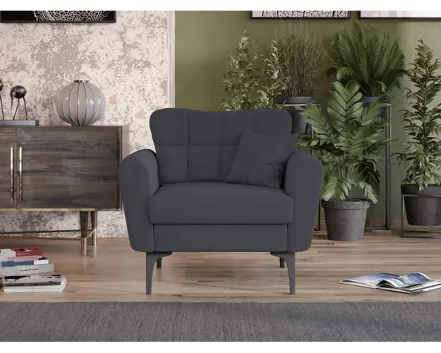 Fotoliu Vibe Gri Inchis Cu dimensiuni generoase, Fotoliu Vibe Gri Inchis ofera momente de liniste si relaxare de fiecare data. Elegant si impunator, il poti plasa in camera de zi, dormitor, birou sau hol pentru a avea un loc confortabil. Pernele de sezut si spatar sunt detasabile pentru a usura curatarea si aspirarea acestuia. Deasemenea picioarele negre inalte de 19cm pe langa rolul estetic ofera spatiul necesar pentru aspirare si circularea aerului. Bratele rotunjite ofera un suport anatomic, cat si functional desavarsit. Livrare gratuita si rapida, 4-10 zile lucratoare prin flota proprie Suntem producatori de tapiterii, fara intermediari, garantie 2 ani Atentie: Picioarele necesita montaj, acestea nu vin montate direct pe produs pentru a fi protejate la transport. DESCARCA SCHITA DE MONTAJ Ofera fermitatea optima, dar si confortul dorit prin: Sezutul cu arcuri sinusoidale, peste care vine perna cu grosime de 11cm din burete Spatarul din lemn de fag si mucava acoperite de burete si stofa peste care vine perna cu umplutura Brate din lemn de fag, pal si mucava acoperite de burete si stofa Fotoliu Vibe Gri Inchis , cu aspect clasic si placut creeaza o atmosfera linistitoare in orice camera. Ofera relaxare desavarsita intr-un spatiu generos de sezut ce are 55x58cm, cat si prin perna de spatar + perna decorativa inclusa. Puteti alege din mai multe culori pentru stofa, produsele disponibile le puteti vedea aici Modele Vibe . Dimensiuni Fotoliu Latime: 90cm Adancime: 85cm H spate cu picior fara perna: 74cm H spate cu picior si perna: 85cm H spate fara picior: 55cm H picior: 19cm H brat cu picior: 60cm H brat fara picior: 42cm Latime intre brate: 58cm Adancime sezut fara perna: 70cm Adancime sezut cu perna: 55cm H sezut cu picior: 43cm H sezut fara picior: 24cm Perna sezut grosime: 11cm Grosime brat: 14cm Perna spatar: 40 x 74cm Tapiterie Fotoliu Vibe Gri Inchis Tapiteria produsului este din stofa Gri Inchis ce nu este pretentioasa, mascheaza eventualele evenimente neplacute prin care se poate murdari sau pata si se integreaza perfect in majoritatea locuintelor. Intretinere: se recomanda ca praful sa se stearga cu un material textil moale (finet) umed si sa nu se curete cu agenti chimici (diluant, acetona). Imaginile sunt cu titlu de prezentare si pot avea mici diferente de nuante in functie de display. Dimensiunile sunt exprimate in centimetri si pot oscila intre ± 50 mm. Produsul cu denumirea Fotoliu Vibe Gri Inchis face parte din brandul Mobila laguna, se afla in categoria Fotolii si subcategoria