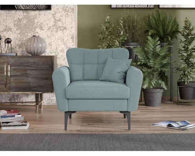 Fotoliu Vibe Turcoaz Cu dimensiuni generoase, Fotoliu Vibe Turcoaz ofera momente de liniste si relaxare de fiecare data. Elegant si impunator, il poti plasa in camera de zi, dormitor, birou sau hol pentru a avea un loc confortabil. Pernele de sezut si spatar sunt detasabile pentru a usura curatarea si aspirarea acestuia. Deasemenea picioarele negre inalte de 19cm pe langa rolul estetic ofera spatiul necesar pentru aspirare si circularea aerului. Bratele rotunjite ofera un suport anatomic, cat si functional desavarsit. Livrare gratuita si rapida, 4-10 zile lucratoare prin flota proprie Suntem producatori de tapiterii, fara intermediari, garantie 2 ani Atentie: Picioarele necesita montaj, acestea nu vin montate direct pe produs pentru a fi protejate la transport. DESCARCA SCHITA DE MONTAJ Ofera fermitatea optima, dar si confortul dorit prin: Sezutul cu arcuri sinusoidale, peste care vine perna cu grosime de 11cm din burete Spatarul din lemn de fag si mucava acoperite de burete si stofa peste care vine perna cu umplutura Brate din lemn de fag, pal + mucava acoperite de burete si stofa Fotoliu Vibe Turcoaz , cu aspect clasic si placut creeaza o atmosfera linistitoare in orice camera. Ofera relaxare desavarsita intr-un spatiu generos de sezut ce are 55x58cm, cat si prin perna de spatar + perna decorativa inclusa. Puteti alege din mai multe culori pentru stofa, produsele disponibile le puteti vedea aici Modele Vibe . Videoclipul contine alta nuanta decat cea de pe pagina produsului, acesta avand ca scop prezentarea familiei pentru a se reda in detaliu aspectul materialului. Dimensiuni Fotoliu Latime: 90cm Adancime: 85cm H spate cu picior fara perna: 74cm H spate cu picior si perna: 85cm H spate fara picior: 55cm H picior: 19cm H brat cu picior: 60cm H brat fara picior: 42cm Latime intre brate: 58cm Adancime sezut fara perna: 70cm Adancime sezut cu perna: 55cm H sezut cu picior: 43cm H sezut fara picior: 24cm Perna sezut grosime: 11cm Grosime brat: 14cm Perna spatar: 40 x 74cm Tapiterie Fotoliu Vibe Turcoaz Tapiteria produsului este din stofa Turcoaz ce nu este pretentioasa, mascheaza eventualele evenimente neplacute prin care se poate murdari sau pata si se integreaza perfect in majoritatea locuintelor. Intretinere: se recomanda ca praful sa se stearga cu un material textil moale (finet) umed si sa nu se curete cu agenti chimici (diluant, acetona). Imaginile sunt cu titlu de prezentare si pot avea mici diferente de nuante in functie de display. Dimensiunile sunt exprimate in centimetri si pot oscila intre ± 50 mm. Produsul cu denumirea Fotoliu Vibe Turcoaz face parte din brandul Mobila laguna, se afla in categoria Fotolii si subcategoria
