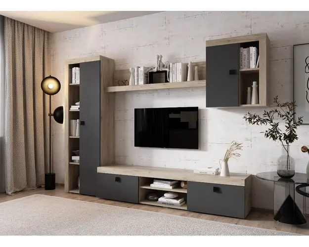 Living Ontario C5 - Mobila sufragerie Living Ontario C5 - Mobila sufragerie are un aspect contemporan / modern si este alcatuita din mai module. Puteti alege direct din configuratiile realizate de noi sau daca doriti puteti creea singuri propria configuratie de living combinand din corpurile de mobila pentru living. In functie de spatiul unde doriti sa amplasati mobila puteti adapta livingul. Livrare gratuita si rapida, 4-10 zile lucratoare prin flota proprie Suntem producatori de mobilier, fara intermediari Toate piesele de mobilier au o garantie de 2 ani Corpurile sunt construite din PAL melaminat de 16mm cu finisaj gri antracit si stejar k02 , cel din urma avand o textura similara lemnului, care creeaza un contrast rafinat si un ambient placut.Cantul aplicat este unul de 0,6 care le permite muchiilor sa fie placute la atingere . Dimensiuni Living Ontario C5 - Mobila sufragerie Imaginea alaturata prezinta compartimentarea pentru mobila de sufragerie Ontario. Aceasta configuratie are 4 corpuri modulare , 2 suspendate si doua pe sol. Spatii de depozitare cu usa cat si etajere si polita. Dimensiuni corpuri: Comoda TV: L 180 x A 35.2 x H 39.8 cm Soldat 1 usa: L 60 x A 30.4 x H 182 cm Corp Suspendat: L 60 x A 30.4 x H 69.8 cm Polita 1390 : L 139 x A 21.6 x H 34.8 cm Dimensiuni totale livin L 259 x A 35.2 x H 182 cm Spatiul de TV: diagonala max 150cm/59″ (sau mai mare) Recomandam un TV cu o diagonala de maxim 150cm/59″. Se pot pune si TV-uri cu diagonala mai mare mutand corpul suspendat mai in stanga livingului sau mai sus. Toate corpurile se pot pune pe stanga sau pe dreapta in functie de cum doriti. Nu este obligatoriu pozitionarea ca in prezentare. Ele nu sunt prinse unul de celalalt. Info si schite montaj mobila sufragerie Schite de montaj: DESCARCA SCHITA MONTAJ COMODA TV DESCARCA SCHITA MONTAJ SOLDAT 1 USA DESCARCA SCHITA MONTAJ POLITA DESCARCA SCHITA MONTAJ CORP SUSPENDAT Pretul afisat nu include alte accesorii sau obiecte de decor (TV, tablouri, elemente de iluminat, covor etc.) Dimensiunile sunt exprimate in cm si pot oscila intre ± 10 mm. Produsul se livreaza demontat si este insotit de accesorii si instructiuni de asamblare. Produsul cu denumirea Living Ontario C5 - Mobila sufragerie face parte din brandul Mobila laguna, se afla in categoria Mobila living si sufragerii si subcategoria