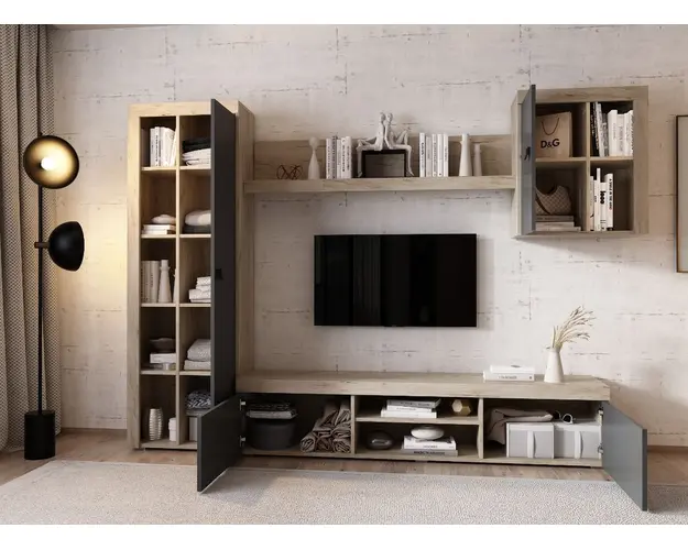 Living Ontario C5 - Mobila sufragerie Living Ontario C5 - Mobila sufragerie are un aspect contemporan / modern si este alcatuita din mai module. Puteti alege direct din configuratiile realizate de noi sau daca doriti puteti creea singuri propria configuratie de living combinand din corpurile de mobila pentru living. In functie de spatiul unde doriti sa amplasati mobila puteti adapta livingul. Livrare gratuita si rapida, 4-10 zile lucratoare prin flota proprie Suntem producatori de mobilier, fara intermediari Toate piesele de mobilier au o garantie de 2 ani Corpurile sunt construite din PAL melaminat de 16mm cu finisaj gri antracit si stejar k02 , cel din urma avand o textura similara lemnului, care creeaza un contrast rafinat si un ambient placut.Cantul aplicat este unul de 0,6 care le permite muchiilor sa fie placute la atingere . Dimensiuni Living Ontario C5 - Mobila sufragerie Imaginea alaturata prezinta compartimentarea pentru mobila de sufragerie Ontario. Aceasta configuratie are 4 corpuri modulare , 2 suspendate si doua pe sol. Spatii de depozitare cu usa cat si etajere si polita. Dimensiuni corpuri: Comoda TV: L 180 x A 35.2 x H 39.8 cm Soldat 1 usa: L 60 x A 30.4 x H 182 cm Corp Suspendat: L 60 x A 30.4 x H 69.8 cm Polita 1390 : L 139 x A 21.6 x H 34.8 cm Dimensiuni totale livin L 259 x A 35.2 x H 182 cm Spatiul de TV: diagonala max 150cm/59″ (sau mai mare) Recomandam un TV cu o diagonala de maxim 150cm/59″. Se pot pune si TV-uri cu diagonala mai mare mutand corpul suspendat mai in stanga livingului sau mai sus. Toate corpurile se pot pune pe stanga sau pe dreapta in functie de cum doriti. Nu este obligatoriu pozitionarea ca in prezentare. Ele nu sunt prinse unul de celalalt. Info si schite montaj mobila sufragerie Schite de montaj: DESCARCA SCHITA MONTAJ COMODA TV DESCARCA SCHITA MONTAJ SOLDAT 1 USA DESCARCA SCHITA MONTAJ POLITA DESCARCA SCHITA MONTAJ CORP SUSPENDAT Pretul afisat nu include alte accesorii sau obiecte de decor (TV, tablouri, elemente de iluminat, covor etc.) Dimensiunile sunt exprimate in cm si pot oscila intre ± 10 mm. Produsul se livreaza demontat si este insotit de accesorii si instructiuni de asamblare. Produsul cu denumirea Living Ontario C5 - Mobila sufragerie face parte din brandul Mobila laguna, se afla in categoria Mobila living si sufragerii si subcategoria