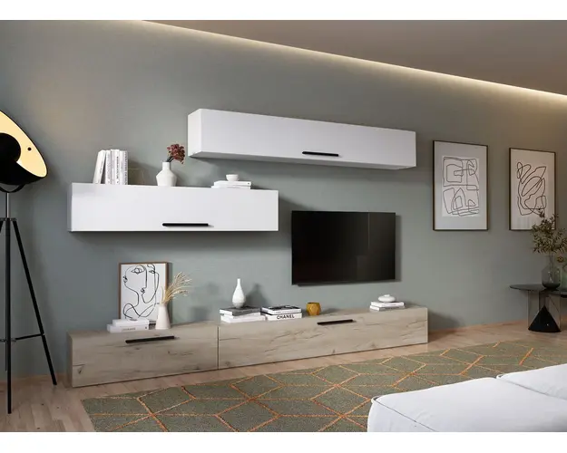 Living Pati 003 - Mobila Sufragerie Alba + Stejar Living Pati 003 - Mobila Sufragerie Alba + Stejar face parte dintr-o categorie de mobilier modern, contemporan ce imbina designul cu utilitatea. Familia de living Pati are 4 decoruri: stejar, alb, gri si beton . Am realizat peste 100 de configuratii din care puteti alege cu dimensiuni si stiluri diferite. Dulapul de haine este optional si puteti alege unul sau mai multe bucati. Livrare gratuita si rapida, 4-10 zile lucratoare prin flota proprie Suntem producatori de mobilier, fara intermediari Toate piesele de mobilier au o garantie de 2 ani Corpurile sunt construite din PAL melaminat de 16mm. Cantul aplicat este de 0,6 ce le permite muchiilor sa fie placute la atingere . Video de prezentare familie Videoul de prezentare poate contine mai multe corpuri de mobilier sau mai putine in comparatie cu produsul de pe aceasta pagina. Scopul acestui video este de a detalia aspectul materialelor, accesoriilor cat si a familiei din care face parte. Dimensiuni Living Pati 003 - Mobila Sufragerie Alba + Stejar Imaginea alaturata prezinta compartimentarea pentru mobila de sufragerie Pati. Aceasta configuratie contine urmatoarele corpuri: 1 x Corp 920: L 92 x H 29 x A 26.7 cm 1 x Corp 1380: L 138 x H 29 x A 26.7 cm 2 x Corp 1850 : L 185 x H 29 x A 26.7 cm Optional dulap: L 79.8 x H 185 x A 35 cm Dimensiuni totale living Pati Fara dulap: L 277 x A 26.7 x H 180 cm Cu un dulap: L 356.8 x A 35 x H 185 cm Spatiul de TV: diagonala maxima 139 cm.Toate corpurile se pot pune pe stanga sau pe dreapta in functie de cum doriti. Nu este obligatoriu pozitionarea ca in prezentare. Ele nu sunt prinse unul de celalalt, sunt independente. SCHITA MONTAJ corp 1850 suspendat SCHITA MONTAJ corp 1850 comoda SCHITA MONTAJ corp 1380 SCHITA MONTAJ corp 920 SCHITA MONTAJ dulap 2U Pati Pretul afisat nu include alte accesorii sau obiecte de decor (TV, tablouri, elemente de iluminat, covor etc.) Dimensiunile sunt exprimate in cm si pot oscila intre ± 10 mm. Produsul se livreaza demontat si este insotit de accesorii si instructiuni de asamblare. Produsul cu denumirea Living Pati 003 - Mobila Sufragerie Alba + Stejar face parte din brandul Mobila laguna, se afla in categoria Mobila living si sufragerii si subcategoria