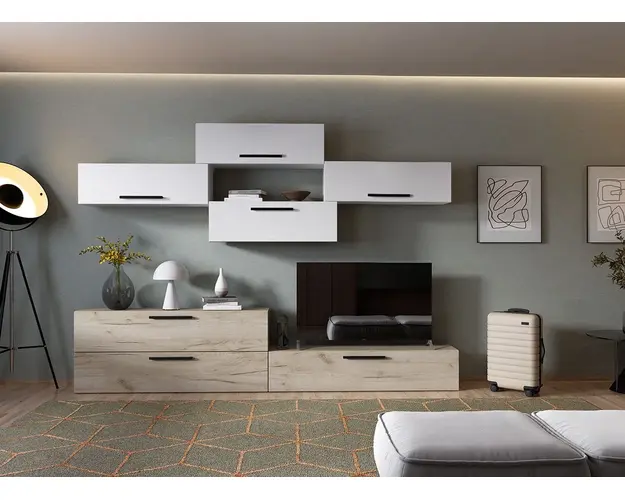 Living Pati 015 - Mobila Sufragerie Alb + Stejar
