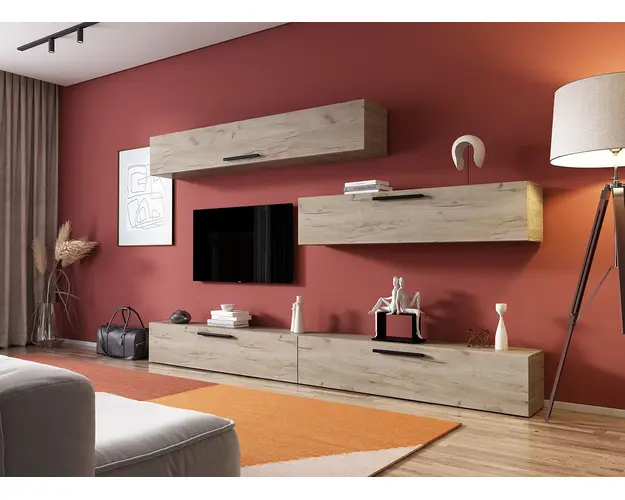 Living Pati 022 - Mobila Sufragerie Stejar Living Pati 022 - Mobila Sufragerie Stejar face parte dintr-o categorie de mobilier modern, contemporan ce imbina designul cu utilitatea. Familia de living Pati are 4 decoruri: stejar, alb, gri si beton . Am realizat peste 100 de configuratii din care puteti alege cu dimensiuni si stiluri diferite. Dulapul de haine este optional si puteti alege unul sau mai multe bucati. Livrare gratuita si rapida, 4-10 zile lucratoare prin flota proprie Suntem producatori de mobilier, fara intermediari Toate piesele de mobilier au o garantie de 2 ani Corpurile sunt construite din PAL melaminat de 16mm. Cantul aplicat este de 0,6 ce le permite muchiilor sa fie placute la atingere . Dimensiuni Living Pati 022 - Mobila Sufragerie Stejar Imaginea alaturata prezinta compartimentarea pentru mobila de sufragerie Pati. Aceasta configuratie contine urmatoarele corpuri: 3 x Corp 1380: L 138 x H 29 x A 26.7 cm 1 x Corp 1850: L 185 x H 29 x A 26.7 cm Optional dulap: L 79.8 x H 185 x A 35 cm Dimensiuni totale living Pati Fara dulap: L 276 x A 26.7 x H 175 cm Cu un dulap: L 355.8 x A 35 x H 185 cm Spatiul de TV: diagonala maxima 139 cm.Toate corpurile se pot pune pe stanga sau pe dreapta in functie de cum doriti. Nu este obligatoriu pozitionarea ca in prezentare. Ele nu sunt prinse unul de celalalt, sunt independente. SCHITA MONTAJ CORP 1380 COMODA / INFERIOR SCHITA MONTAJ CORP 1850 SUSPENDAT SCHITA MONTAJ DULAP 2U PATI Pretul afisat nu include alte accesorii sau obiecte de decor (TV, tablouri, elemente de iluminat, covor etc.) Dimensiunile sunt exprimate in cm si pot oscila intre ± 10 mm. Produsul se livreaza demontat si este insotit de accesorii si instructiuni de asamblare. Produsul cu denumirea Living Pati 022 - Mobila Sufragerie Stejar face parte din brandul Mobila laguna, se afla in categoria Mobila living si sufragerii si subcategoria