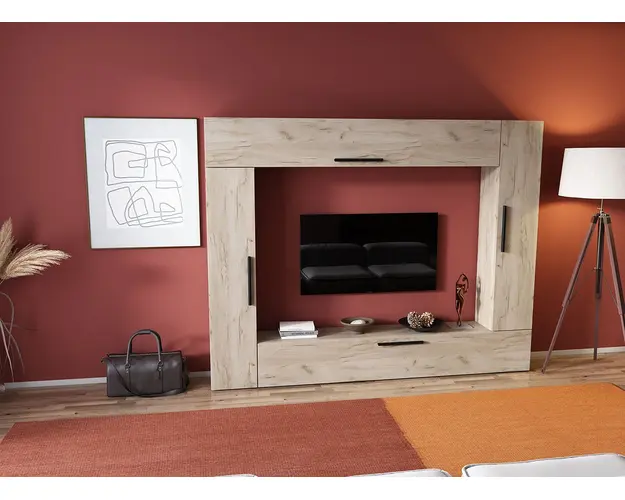 Living Pati 025 - Mobila Sufragerie Stejar Living Pati 025 - Mobila Sufragerie Stejar face parte dintr-o categorie de mobilier modern, contemporan ce imbina designul cu utilitatea. Familia de living Pati are 4 decoruri: stejar, alb, gri si beton . Am realizat peste 100 de configuratii din care puteti alege cu dimensiuni si stiluri diferite. Dulapul de haine este optional si puteti alege unul sau mai multe bucati. Livrare gratuita si rapida, 4-10 zile lucratoare prin flota proprie Suntem producatori de mobilier, fara intermediari Toate piesele de mobilier au o garantie de 2 ani Corpurile sunt construite din PAL melaminat de 16mm. Cantul aplicat este de 0,6 ce le permite muchiilor sa fie placute la atingere . Video de prezentare familie Videoul de prezentare poate contine mai multe corpuri de mobilier sau mai putine in comparatie cu produsul de pe aceasta pagina. Scopul acestui video este de a detalia aspectul materialelor, accesoriilor cat si a familiei din care face parte. Dimensiuni Living Pati 025 - Mobila Sufragerie Stejar Imaginea alaturata prezinta compartimentarea pentru mobila de sufragerie Pati. Aceasta configuratie contine urmatoarele corpuri: 2 x Corp 1380: L 138 x H 29 x A 26.7 cm 2 x Corp 1850: L 185 x H 29 x A 26.7 cm Optional dulap: L 79.8 x H 185 x A 35 cm Dimensiuni totale living Pati Fara dulap: L 214 x A 26.7 x H 170 cm Cu un dulap: L 293.8 x A 35 x H 185 cm Spatiul de TV: diagonala maxima 139 cm.Toate corpurile se pot pune pe stanga sau pe dreapta in functie de cum doriti. Nu este obligatoriu pozitionarea ca in prezentare. Ele nu sunt prinse unul de celalalt, sunt independente. SCHITA MONTAJ CORP 1850 SUSPENDAT SCHITA MONTAJ CORP 1850 COMODA SCHITA MONTAJ CORP 1380 VERTICAL SCHITA MONTAJ dulap 2U Pati Pretul afisat nu include alte accesorii sau obiecte de decor (TV, tablouri, elemente de iluminat, covor etc.) Dimensiunile sunt exprimate in cm si pot oscila intre ± 10 mm. Produsul se livreaza demontat si este insotit de accesorii si instructiuni de asamblare. Produsul cu denumirea Living Pati 025 - Mobila Sufragerie Stejar face parte din brandul Mobila laguna, se afla in categoria Mobila living si sufragerii si subcategoria