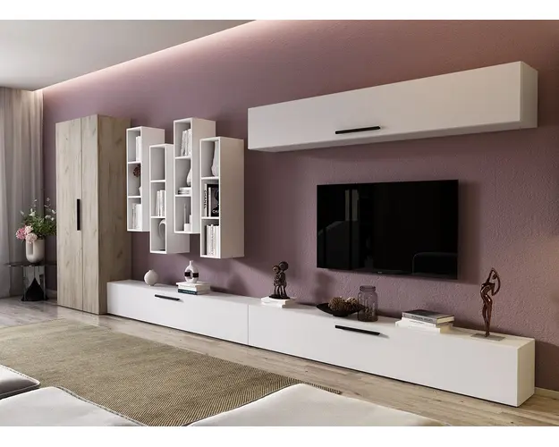 Living Pati 051 - Mobila Sufragerie Alba Living Pati 051 - Mobila Sufragerie Alba face parte dintr-o categorie de mobilier modern, contemporan ce imbina designul cu utilitatea. Familia de living Pati are 4 decoruri: stejar, alb, gri si beton . Am realizat peste 100 de configuratii din care puteti alege cu dimensiuni si stiluri diferite. Dulapul de haine este optional si puteti alege unul sau mai multe bucati. Livrare gratuita si rapida, 4-10 zile lucratoare prin flota proprie Suntem producatori de mobilier, fara intermediari Toate piesele de mobilier au o garantie de 2 ani Corpurile sunt construite din PAL melaminat de 16mm. Cantul aplicat este de 0,6 ce le permite muchiilor sa fie placute la atingere . Video de prezentare familie Videoul de prezentare poate contine alte nuante, mai multe sau mai putine corpuri de mobilier in comparatie cu produsul de pe aceasta pagina. Scopul acestui video este de a detalia aspectul materialelor, accesoriilor cat si a familiei din care face parte. Dimensiuni Living Pati 051 - Mobila Sufragerie Alba Imaginea alaturata prezinta compartimentarea pentru mobila de sufragerie Pati. Aceasta configuratie contine urmatoarele corpuri: 3 x Corp 1850: L 185 x H 29 x A 26.7 cm 4 x Corp decorativ: L 91.5 x H 23.2 x A 25 cm Optional dulap: L 79.8 x H 185 x A 35 cm Dimensiuni totale living Pati Fara dulap: L 370 x A 26.7 x H 180 cm Cu un dulap: L 449.8 x A 35 x H 185 cm Spatiul de TV: diagonala maxima 139 cm.Toate corpurile se pot pune pe stanga sau pe dreapta in functie de cum doriti. Nu este obligatoriu pozitionarea ca in prezentare. Ele nu sunt prinse unul de celalalt, sunt independente. SCHITA MONTAJ CORP 1850 SUSPENDAT SCHITA MONTAJ CORP 1850 COMODA SCHITA MONTAJ CORP DECORATIV SCHITA MONTAJ dulap 2U Pati Pretul afisat nu include alte accesorii sau obiecte de decor (TV, tablouri, elemente de iluminat, covor etc.) Dimensiunile sunt exprimate in cm si pot oscila intre ± 10 mm. Produsul se livreaza demontat si este insotit de accesorii si instructiuni de asamblare. Produsul cu denumirea Living Pati 051 - Mobila Sufragerie Alba face parte din brandul Mobila laguna, se afla in categoria Mobila living si sufragerii si subcategoria