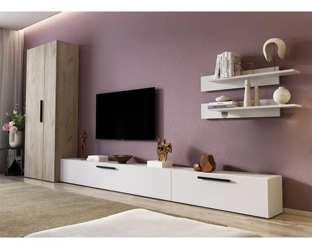 Living Pati 060 - Mobila Sufragerie Alba Living Pati 060 - Mobila Sufragerie Alba face parte dintr-o categorie de mobilier modern, contemporan ce imbina designul cu utilitatea. Familia de living Pati are 4 decoruri: stejar, alb, gri si beton . Am realizat peste 100 de configuratii din care puteti alege cu dimensiuni si stiluri diferite. Dulapul de haine este optional si puteti alege unul sau mai multe bucati. Livrare gratuita si rapida, 4-10 zile lucratoare prin flota proprie Suntem producatori de mobilier, fara intermediari Toate piesele de mobilier au o garantie de 2 ani Corpurile sunt construite din PAL melaminat de 16mm. Cantul aplicat este de 0,6 ce le permite muchiilor sa fie placute la atingere . Video de prezentare familie Videoul de prezentare poate contine alte nuante, mai multe sau mai putine corpuri de mobilier in comparatie cu produsul de pe aceasta pagina. Scopul acestui video este de a detalia aspectul materialelor, accesoriilor cat si a familiei din care face parte. Dimensiuni Living Pati 060 - Mobila Sufragerie Alba Imaginea alaturata prezinta compartimentarea pentru mobila de sufragerie Pati. Aceasta configuratie contine urmatoarele corpuri: 1 x Corp 1380: L 138 x H 29 x A 26.7 cm 1 x Corp 920: L 92 x H 29 x A 26.7 cm 2 x Polita suspendate: L 92 x H 14.5 x A 16.1 cm Optional dulap: L 79.8 x H 185 x A 35 cm Dimensiuni totale living Pati Fara dulap: L 230 x A 26.7 x H 160 cm Cu un dulap: L 309.8 x A 35 x H 185 cm Spatiul de TV: diagonala maxima 139 cm.Toate corpurile se pot pune pe stanga sau pe dreapta in functie de cum doriti. Nu este obligatoriu pozitionarea ca in prezentare. Ele nu sunt prinse unul de celalalt, sunt independente. SCHITA MONTAJ corp 1380 comoda SCHITA MONTAJ corp 920 comoda SCHITA MONTAJ Set Polite SCHITA MONTAJ dulap 2U Pati Pretul afisat nu include alte accesorii sau obiecte de decor (TV, tablouri, elemente de iluminat, covor etc.) Dimensiunile sunt exprimate in cm si pot oscila intre ± 10 mm. Produsul se livreaza demontat si este insotit de accesorii si instructiuni de asamblare. Produsul cu denumirea Living Pati 060 - Mobila Sufragerie Alba face parte din brandul Mobila laguna, se afla in categoria Mobila living si sufragerii si subcategoria