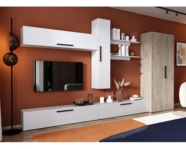 Living Pati 063 - Mobila Sufragerie Alba Living Pati 063 - Mobila Sufragerie Alba face parte dintr-o categorie de mobilier modern, contemporan ce imbina designul cu utilitatea. Familia de living Pati are 4 decoruri: stejar, alb, gri si beton . Am realizat peste 100 de configuratii din care puteti alege cu dimensiuni si stiluri diferite. Dulapul de haine este optional si puteti alege unul sau mai multe bucati. Livrare gratuita si rapida, 4-10 zile lucratoare prin flota proprie Suntem producatori de mobilier, fara intermediari Toate piesele de mobilier au o garantie de 2 ani Corpurile sunt construite din PAL melaminat de 16mm. Cantul aplicat este de 0,6 ce le permite muchiilor sa fie placute la atingere . Video de prezentare familie Videoul de prezentare poate contine alte nuante, mai multe sau mai putine corpuri de mobilier in comparatie cu produsul de pe aceasta pagina. Scopul acestui video este de a detalia aspectul materialelor, accesoriilor cat si a familiei din care face parte. Dimensiuni Living Pati 063 - Mobila Sufragerie Alba Imaginea alaturata prezinta compartimentarea pentru mobila de sufragerie Pati. Aceasta configuratie contine urmatoarele corpuri: 4 x Corp 1380: L 138 x H 29 x A 26.7 cm 2 x Polita suspendate: L 92 x H 14.5 x A 16.1 cm Optional dulap: L 79.8 x H 185 x A 35 cm Dimensiuni totale living Pati Fara dulap: L 276 x A 26.7 x H 190 cm Cu un dulap: L 355.8 x A 35 x H 190 cm Spatiul de TV: diagonala maxima 139 cm.Toate corpurile se pot pune pe stanga sau pe dreapta in functie de cum doriti. Nu este obligatoriu pozitionarea ca in prezentare. Ele nu sunt prinse unul de celalalt, sunt independente. SCHITA MONTAJ corp 1380 COMODA SCHITA MONTAJ CORP 1380 SUPERIOR SCHITA MONTAJ CORP 1380 VERTICAL SCHITA MONTAJ Set Polite SCHITA MONTAJ dulap 2U Pati Pretul afisat nu include alte accesorii sau obiecte de decor (TV, tablouri, elemente de iluminat, covor etc.) Dimensiunile sunt exprimate in cm si pot oscila intre ± 10 mm. Produsul se livreaza demontat si este insotit de accesorii si instructiuni de asamblare. Produsul cu denumirea Living Pati 063 - Mobila Sufragerie Alba face parte din brandul Mobila laguna, se afla in categoria Mobila living si sufragerii si subcategoria