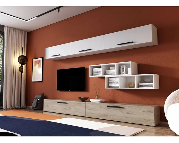 Living Pati 071 - Mobila Sufragerie Stejar + Alb Living Pati 071 - Mobila Sufragerie Stejar + Alb face parte dintr-o categorie de mobilier modern, contemporan ce imbina designul cu utilitatea. Familia de living Pati are 4 decoruri: stejar, alb, gri si beton . Am realizat peste 100 de configuratii din care puteti alege cu dimensiuni si stiluri diferite. Dulapul de haine este optional si puteti alege unul sau mai multe bucati. Livrare gratuita si rapida, 4-10 zile lucratoare prin flota proprie Suntem producatori de mobilier, fara intermediari Toate piesele de mobilier au o garantie de 2 ani Corpurile sunt construite din PAL melaminat de 16mm. Cantul aplicat este de 0,6 ce le permite muchiilor sa fie placute la atingere . Video de prezentare familie Videoul de prezentare poate contine mai multe corpuri de mobilier sau mai putine in comparatie cu produsul de pe aceasta pagina. Scopul acestui video este de a detalia aspectul materialelor, accesoriilor cat si a familiei din care face parte. Dimensiuni Living Pati 071 - Mobila Sufragerie Stejar + Alb Imaginea alaturata prezinta compartimentarea pentru mobila de sufragerie Pati. Aceasta configuratie contine urmatoarele corpuri: 2 x Corp 1380: L 138 x H 29 x A 26.7 cm 3 x Corp 920: L 92 x H 29 x A 26.7 cm 2 x Corp decorativ: L 91.5 x H 23.2 x A 25 cm Optional dulap: L 79.8 x H 185 x A 35 cm Dimensiuni totale living Pati Fara dulap: L 276 x A 26.7 x H 170 cm Cu un dulap: L 355.8 x A 35 x H 185 cm Spatiul de TV: diagonala maxima 139 cm.Toate corpurile se pot pune pe stanga sau pe dreapta in functie de cum doriti. Nu este obligatoriu pozitionarea ca in prezentare. Ele nu sunt prinse unul de celalalt, sunt independente. SCHITA MONTAJ corp 1380 comoda SCHITA MONTAJ CORP 920 superior SCHITA MONTAJ CORP DECORATIV SCHITA MONTAJ dulap 2U Pati Pretul afisat nu include alte accesorii sau obiecte de decor (TV, tablouri, elemente de iluminat, covor etc.) Dimensiunile sunt exprimate in cm si pot oscila intre ± 10 mm. Produsul se livreaza demontat si este insotit de accesorii si instructiuni de asamblare. Produsul cu denumirea Living Pati 071 - Mobila Sufragerie Stejar + Alb face parte din brandul Mobila laguna, se afla in categoria Mobila living si sufragerii si subcategoria
