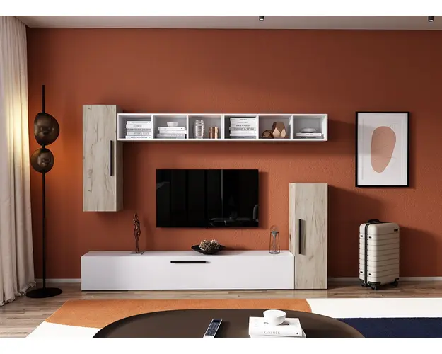 Living Pati 074 - Mobila Sufragerie Stejar + Alb Living Pati 074 - Mobila Sufragerie Stejar + Alb face parte dintr-o categorie de mobilier modern, contemporan ce imbina designul cu utilitatea. Familia de living Pati are 4 decoruri: stejar, alb, gri si beton . Am realizat peste 100 de configuratii din care puteti alege cu dimensiuni si stiluri diferite. Dulapul de haine este optional si puteti alege unul sau mai multe bucati. Livrare gratuita si rapida, 4-10 zile lucratoare prin flota proprie Suntem producatori de mobilier, fara intermediari Toate piesele de mobilier au o garantie de 2 ani Corpurile sunt construite din PAL melaminat de 16mm. Cantul aplicat este de 0,6 ce le permite muchiilor sa fie placute la atingere . Video de prezentare familie Videoul de prezentare poate contine mai multe corpuri de mobilier sau mai putine in comparatie cu produsul de pe aceasta pagina. Scopul acestui video este de a detalia aspectul materialelor, accesoriilor cat si a familiei din care face parte. Dimensiuni Living Pati 074 - Mobila Sufragerie Stejar + Alb Imaginea alaturata prezinta compartimentarea pentru mobila de sufragerie Pati. Aceasta configuratie contine urmatoarele corpuri: 1 x Corp 1850: L 185 x H 29 x A 26.7 cm 2 x Corp 920: L 92 x H 29 x A 26.7 cm 2 x Corp decorativ: L 91.5 x H 23.2 x A 25 cm Optional dulap: L 79.8 x H 185 x A 35 cm Dimensiuni totale living Pati Fara dulap: L 214 x A 26.7 x H 165 cm Cu un dulap: L 293.8 x A 35 x H 185 cm Spatiul de TV: diagonala maxima 139 cm.Toate corpurile se pot pune pe stanga sau pe dreapta in functie de cum doriti. Nu este obligatoriu pozitionarea ca in prezentare. Ele nu sunt prinse unul de celalalt, sunt independente. SCHITA MONTAJ CORP DECORATIV SCHITA MONTAJ CORP 920 vertical SCHITA MONTAJ CORP 1850 COMODA SCHITA MONTAJ dulap 2U Pati Pretul afisat nu include alte accesorii sau obiecte de decor (TV, tablouri, elemente de iluminat, covor etc.) Dimensiunile sunt exprimate in cm si pot oscila intre ± 10 mm. Produsul se livreaza demontat si este insotit de accesorii si instructiuni de asamblare. Produsul cu denumirea Living Pati 074 - Mobila Sufragerie Stejar + Alb face parte din brandul Mobila laguna, se afla in categoria Mobila living si sufragerii si subcategoria