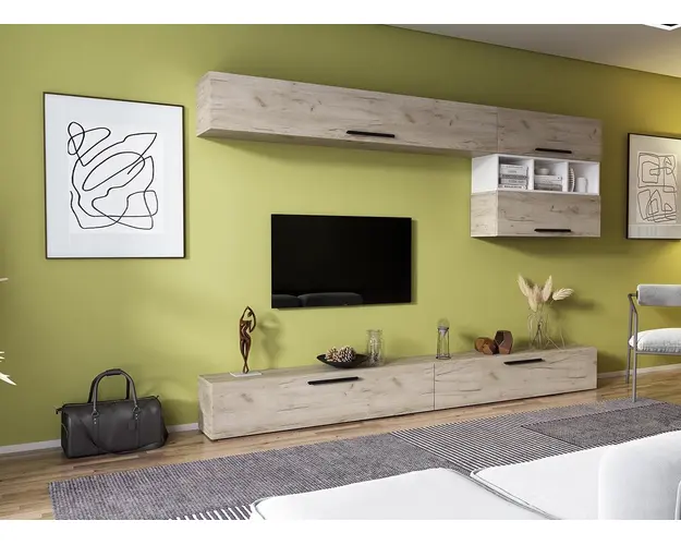 Living Pati 076 - Mobila Sufragerie Stejar + Alb Living Pati 076 - Mobila Sufragerie Stejar + Alb face parte dintr-o categorie de mobilier modern, contemporan ce imbina designul cu utilitatea. Familia de living Pati are 4 decoruri: stejar, alb, gri si beton . Am realizat peste 100 de configuratii din care puteti alege cu dimensiuni si stiluri diferite. Dulapul de haine este optional si puteti alege unul sau mai multe bucati. Livrare gratuita si rapida, 4-10 zile lucratoare prin flota proprie Suntem producatori de mobilier, fara intermediari Toate piesele de mobilier au o garantie de 2 ani Corpurile sunt construite din PAL melaminat de 16mm. Cantul aplicat este de 0,6 ce le permite muchiilor sa fie placute la atingere . Video de prezentare familie Videoul de prezentare poate contine mai multe corpuri de mobilier sau mai putine in comparatie cu produsul de pe aceasta pagina. Scopul acestui video este de a detalia aspectul materialelor, accesoriilor cat si a familiei din care face parte. Dimensiuni Living Pati 076 - Mobila Sufragerie Stejar + Alb Imaginea alaturata prezinta compartimentarea pentru mobila de sufragerie Pati. Aceasta configuratie contine urmatoarele corpuri: 1 x Corp 1850: L 185 x H 29 x A 26.7 cm 2 x Corp 920: L 92 x H 29 x A 26.7 cm 1 x Corp decorativ: L 91.5 x H 23.2 x A 25 cm 2 x Corp 1380: L 138 x H 29 x A 26.7 cm Optional dulap: L 79.8 x H 185 x A 35 cm Dimensiuni totale living Pati Fara dulap: L 276 x A 26.7 x H 170 cm Cu un dulap: L 355.8 x A 35 x H 185 cm Spatiul de TV: diagonala maxima 139 cm.Toate corpurile se pot pune pe stanga sau pe dreapta in functie de cum doriti. Nu este obligatoriu pozitionarea ca in prezentare. Ele nu sunt prinse unul de celalalt, sunt independente. SCHITA MONTAJ CORP DECORATIV SCHITA MONTAJ CORP 1380 COMODA SCHITA MONTAJ CORP 1850 SUPERIOR SCHITA MONTAJ CORP 920 SUPERIOR SCHITA MONTAJ dulap 2U Pati Pretul afisat nu include alte accesorii sau obiecte de decor (TV, tablouri, elemente de iluminat, covor etc.) Dimensiunile sunt exprimate in cm si pot oscila intre ± 10 mm. Produsul se livreaza demontat si este insotit de accesorii si instructiuni de asamblare. Produsul cu denumirea Living Pati 076 - Mobila Sufragerie Stejar + Alb face parte din brandul Mobila laguna, se afla in categoria Mobila living si sufragerii si subcategoria