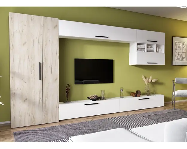 Living Pati 078 - Mobila Sufragerie Alba Living Pati 078 - Mobila Sufragerie Alba face parte dintr-o categorie de mobilier modern, contemporan ce imbina designul cu utilitatea. Familia de living Pati are 4 decoruri: stejar, alb, gri si beton . Am realizat peste 100 de configuratii din care puteti alege cu dimensiuni si stiluri diferite. Dulapul de haine este optional si puteti alege unul sau mai multe bucati. Livrare gratuita si rapida, 4-10 zile lucratoare prin flota proprie Suntem producatori de mobilier, fara intermediari Toate piesele de mobilier au o garantie de 2 ani Corpurile sunt construite din PAL melaminat de 16mm. Cantul aplicat este de 0,6 ce le permite muchiilor sa fie placute la atingere . Video de prezentare familie Videoul de prezentare poate contine alte nuante, mai multe sau mai putine corpuri de mobilier in comparatie cu produsul de pe aceasta pagina. Scopul acestui video este de a detalia aspectul materialelor, accesoriilor cat si a familiei din care face parte. Dimensiuni Living Pati 078 - Mobila Sufragerie Alba Imaginea alaturata prezinta compartimentarea pentru mobila de sufragerie Pati. Aceasta configuratie contine urmatoarele corpuri: 1 x Corp 1850: L 185 x H 29 x A 26.7 cm 2 x Corp 920: L 92 x H 29 x A 26.7 cm 1 x Corp decorativ: L 91.5 x H 23.2 x A 25 cm 2 x Corp 1380: L 138 x H 29 x A 26.7 cm Optional dulap: L 79.8 x H 185 x A 35 cm Dimensiuni totale living Pati Fara dulap: L 276 x A 26.7 x H 170 cm Cu un dulap: L 355.8 x A 35 x H 185 cm Spatiul de TV: diagonala maxima 139 cm.Toate corpurile se pot pune pe stanga sau pe dreapta in functie de cum doriti. Nu este obligatoriu pozitionarea ca in prezentare. Ele nu sunt prinse unul de celalalt, sunt independente. SCHITA MONTAJ CORP DECORATIV SCHITA MONTAJ CORP 1380 COMODA SCHITA MONTAJ CORP 1850 SUPERIOR SCHITA MONTAJ CORP 920 SUPERIOR SCHITA MONTAJ dulap 2U Pati Pretul afisat nu include alte accesorii sau obiecte de decor (TV, tablouri, elemente de iluminat, covor etc.) Dimensiunile sunt exprimate in cm si pot oscila intre ± 10 mm. Produsul se livreaza demontat si este insotit de accesorii si instructiuni de asamblare. Produsul cu denumirea Living Pati 078 - Mobila Sufragerie Alba face parte din brandul Mobila laguna, se afla in categoria Mobila living si sufragerii si subcategoria