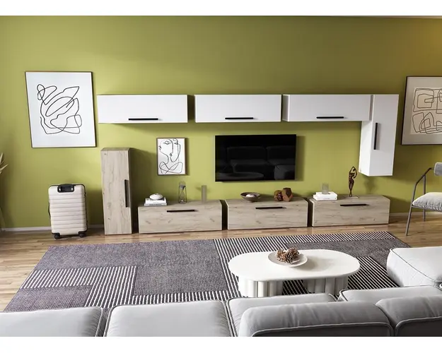Living Pati 083 - Mobila Sufragerie Stejar + Alb Living Pati 083 - Mobila Sufragerie Stejar + Alb face parte dintr-o categorie de mobilier modern, contemporan ce imbina designul cu utilitatea. Familia de living Pati are 4 decoruri: stejar, alb, gri si beton . Am realizat peste 100 de configuratii din care puteti alege cu dimensiuni si stiluri diferite. Dulapul de haine este optional si puteti alege unul sau mai multe bucati. Livrare gratuita si rapida, 4-10 zile lucratoare prin flota proprie Suntem producatori de mobilier, fara intermediari Toate piesele de mobilier au o garantie de 2 ani Corpurile sunt construite din PAL melaminat de 16mm. Cantul aplicat este de 0,6 ce le permite muchiilor sa fie placute la atingere . Video de prezentare familie Videoul de prezentare poate contine mai multe corpuri de mobilier sau mai putine in comparatie cu produsul de pe aceasta pagina. Scopul acestui video este de a detalia aspectul materialelor, accesoriilor cat si a familiei din care face parte. Dimensiuni Living Pati 083 - Mobila Sufragerie Stejar + Alb Imaginea alaturata prezinta compartimentarea pentru mobila de sufragerie Pati. Aceasta configuratie contine urmatoarele corpuri: 8 x Corp 920: L 92 x H 29 x A 26.7 cm Optional dulap: L 79.8 x H 185 x A 35 cm Dimensiuni totale living Pati Fara dulap: L 335 x A 26.7 x H 160 cm Cu un dulap: L 414.8 x A 35 x H 185 cm Spatiul de TV: diagonala maxima 139 cm.Toate corpurile se pot pune pe stanga sau pe dreapta in functie de cum doriti. Nu este obligatoriu pozitionarea ca in prezentare. Ele nu sunt prinse unul de celalalt, sunt independente. SCHITA MONTAJ CORP 920 SUPERIOR SCHITA MONTAJ CORP 920 INFERIOR SCHITA MONTAJ CORP 920 VERTICAL SCHITA MONTAJ dulap 2U Pati Pretul afisat nu include alte accesorii sau obiecte de decor (TV, tablouri, elemente de iluminat, covor etc.) Dimensiunile sunt exprimate in cm si pot oscila intre ± 10 mm. Produsul se livreaza demontat si este insotit de accesorii si instructiuni de asamblare. Produsul cu denumirea Living Pati 083 - Mobila Sufragerie Stejar + Alb face parte din brandul Mobila laguna, se afla in categoria Mobila living si sufragerii si subcategoria