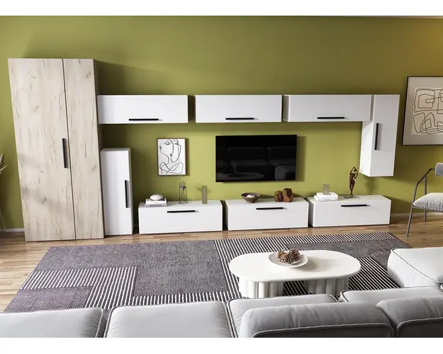 Living Pati 084 - Mobila Sufragerie Alba Living Pati 084 - Mobila Sufragerie Alba face parte dintr-o categorie de mobilier modern, contemporan ce imbina designul cu utilitatea. Familia de living Pati are 4 decoruri: stejar, alb, gri si beton . Am realizat peste 100 de configuratii din care puteti alege cu dimensiuni si stiluri diferite. Dulapul de haine este optional si puteti alege unul sau mai multe bucati. Livrare gratuita si rapida, 4-10 zile lucratoare prin flota proprie Suntem producatori de mobilier, fara intermediari Toate piesele de mobilier au o garantie de 2 ani Corpurile sunt construite din PAL melaminat de 16mm. Cantul aplicat este de 0,6 ce le permite muchiilor sa fie placute la atingere . Video de prezentare familie Videoul de prezentare poate contine alte nuante, mai multe sau mai putine corpuri de mobilier in comparatie cu produsul de pe aceasta pagina. Scopul acestui video este de a detalia aspectul materialelor, accesoriilor cat si a familiei din care face parte. Dimensiuni Living Pati 084 - Mobila Sufragerie Alba Imaginea alaturata prezinta compartimentarea pentru mobila de sufragerie Pati. Aceasta configuratie contine urmatoarele corpuri: 8 x Corp 920: L 92 x H 29 x A 26.7 cm Optional dulap: L 79.8 x H 185 x A 35 cm Dimensiuni totale living Pati Fara dulap: L 335 x A 26.7 x H 160 cm Cu un dulap: L 414.8 x A 35 x H 185 cm Spatiul de TV: diagonala maxima 139 cm.Toate corpurile se pot pune pe stanga sau pe dreapta in functie de cum doriti. Nu este obligatoriu pozitionarea ca in prezentare. Ele nu sunt prinse unul de celalalt, sunt independente. SCHITA MONTAJ CORP 920 SUPERIOR SCHITA MONTAJ CORP 920 INFERIOR SCHITA MONTAJ CORP 920 VERTICAL SCHITA MONTAJ dulap 2U Pati Pretul afisat nu include alte accesorii sau obiecte de decor (TV, tablouri, elemente de iluminat, covor etc.) Dimensiunile sunt exprimate in cm si pot oscila intre ± 10 mm. Produsul se livreaza demontat si este insotit de accesorii si instructiuni de asamblare. Produsul cu denumirea Living Pati 084 - Mobila Sufragerie Alba face parte din brandul Mobila laguna, se afla in categoria Mobila living si sufragerii si subcategoria