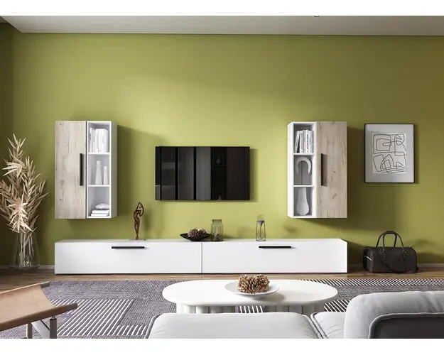 Living Pati 089 - Mobila Sufragerie Stejar + Alb Living Pati 089 - Mobila Sufragerie Stejar + Alb face parte dintr-o categorie de mobilier modern, contemporan ce imbina designul cu utilitatea. Familia de living Pati are 4 decoruri: stejar, alb, gri si beton . Am realizat peste 100 de configuratii din care puteti alege cu dimensiuni si stiluri diferite. Dulapul de haine este optional si puteti alege unul sau mai multe bucati. Livrare gratuita si rapida, 4-10 zile lucratoare prin flota proprie Suntem producatori de mobilier, fara intermediari Toate piesele de mobilier au o garantie de 2 ani Corpurile sunt construite din PAL melaminat de 16mm. Cantul aplicat este de 0,6 ce le permite muchiilor sa fie placute la atingere . Video de prezentare familie Videoul de prezentare poate contine mai multe corpuri de mobilier sau mai putine in comparatie cu produsul de pe aceasta pagina. Scopul acestui video este de a detalia aspectul materialelor, accesoriilor cat si a familiei din care face parte. Dimensiuni Living Pati 089 - Mobila Sufragerie Stejar + Alb Imaginea alaturata prezinta compartimentarea pentru mobila de sufragerie Pati. Aceasta configuratie contine urmatoarele corpuri: 2 x Corp 920: L 92 x H 29 x A 26.7 cm 2 x Corp 1380: L 138 x H 29 x A 26.7 cm 2 x Corp decorativ: L 91.5 x H 23.2 x A 25 cm Optional dulap: L 79.8 x H 185 x A 35 cm Dimensiuni totale living Pati Fara dulap: L 276 x A 26.7 x H 160 cm Cu un dulap: L 355.8 x A 35 x H 185 cm Spatiul de TV: diagonala maxima 139 cm.Toate corpurile se pot pune pe stanga sau pe dreapta in functie de cum doriti. Nu este obligatoriu pozitionarea ca in prezentare. Ele nu sunt prinse unul de celalalt, sunt independente. SCHITA MONTAJ CORP 920 VERTICAL SCHITA MONTAJ CORP 1380 COMODA SCHITA MONTAJ CORP DECORATIV SCHITA MONTAJ dulap 2U Pati Pretul afisat nu include alte accesorii sau obiecte de decor (TV, tablouri, elemente de iluminat, covor etc.) Dimensiunile sunt exprimate in cm si pot oscila intre ± 10 mm. Produsul se livreaza demontat si este insotit de accesorii si instructiuni de asamblare. Produsul cu denumirea Living Pati 089 - Mobila Sufragerie Stejar + Alb face parte din brandul Mobila laguna, se afla in categoria Mobila living si sufragerii si subcategoria