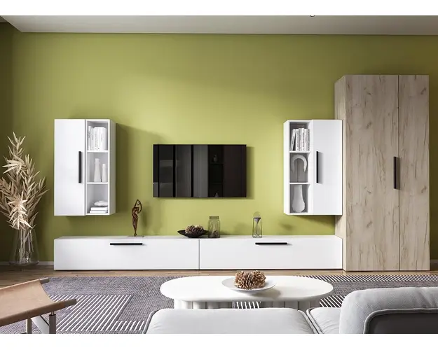Living Pati 090 - Mobila Sufragerie Alba Living Pati 090 - Mobila Sufragerie Alba face parte dintr-o categorie de mobilier modern, contemporan ce imbina designul cu utilitatea. Familia de living Pati are 4 decoruri: stejar, alb, gri si beton . Am realizat peste 100 de configuratii din care puteti alege cu dimensiuni si stiluri diferite. Dulapul de haine este optional si puteti alege unul sau mai multe bucati. Livrare gratuita si rapida, 4-10 zile lucratoare prin flota proprie Suntem producatori de mobilier, fara intermediari Toate piesele de mobilier au o garantie de 2 ani Corpurile sunt construite din PAL melaminat de 16mm. Cantul aplicat este de 0,6 ce le permite muchiilor sa fie placute la atingere . Video de prezentare familie Videoul de prezentare poate contine alte nuante, mai multe sau mai putine corpuri de mobilier in comparatie cu produsul de pe aceasta pagina. Scopul acestui video este de a detalia aspectul materialelor, accesoriilor cat si a familiei din care face parte. Dimensiuni Living Pati 090 - Mobila Sufragerie Alba Imaginea alaturata prezinta compartimentarea pentru mobila de sufragerie Pati. Aceasta configuratie contine urmatoarele corpuri: 2 x Corp 920: L 92 x H 29 x A 26.7 cm 2 x Corp 1380: L 138 x H 29 x A 26.7 cm 2 x Corp decorativ: L 91.5 x H 23.2 x A 25 cm Optional dulap: L 79.8 x H 185 x A 35 cm Dimensiuni totale living Pati Fara dulap: L 276 x A 26.7 x H 160 cm Cu un dulap: L 355.8 x A 35 x H 185 cm Spatiul de TV: diagonala maxima 139 cm.Toate corpurile se pot pune pe stanga sau pe dreapta in functie de cum doriti. Nu este obligatoriu pozitionarea ca in prezentare. Ele nu sunt prinse unul de celalalt, sunt independente. SCHITA MONTAJ CORP 920 VERTICAL SCHITA MONTAJ CORP 1380 COMODA SCHITA MONTAJ CORP DECORATIV SCHITA MONTAJ dulap 2U Pati Pretul afisat nu include alte accesorii sau obiecte de decor (TV, tablouri, elemente de iluminat, covor etc.) Dimensiunile sunt exprimate in cm si pot oscila intre ± 10 mm. Produsul se livreaza demontat si este insotit de accesorii si instructiuni de asamblare. Produsul cu denumirea Living Pati 090 - Mobila Sufragerie Alba face parte din brandul Mobila laguna, se afla in categoria Mobila living si sufragerii si subcategoria