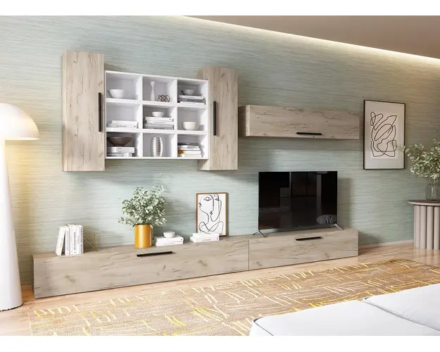 Living Pati 093 - Mobila Sufragerie Alba + Stejar Living Pati 093 - Mobila Sufragerie Alba + Stejar face parte dintr-o categorie de mobilier modern, contemporan ce imbina designul cu utilitatea. Familia de living Pati are 4 decoruri: stejar, alb, gri si beton . Am realizat peste 100 de configuratii din care puteti alege cu dimensiuni si stiluri diferite. Dulapul de haine este optional si puteti alege unul sau mai multe bucati. Livrare gratuita si rapida, 4-10 zile lucratoare prin flota proprie Suntem producatori de mobilier, fara intermediari Toate piesele de mobilier au o garantie de 2 ani Corpurile sunt construite din PAL melaminat de 16mm. Cantul aplicat este de 0,6 ce le permite muchiilor sa fie placute la atingere . Video de prezentare familie Videoul de prezentare poate contine mai multe corpuri de mobilier sau mai putine in comparatie cu produsul de pe aceasta pagina. Scopul acestui video este de a detalia aspectul materialelor, accesoriilor cat si a familiei din care face parte. Dimensiuni Living Pati 093 - Mobila Sufragerie Alba + Stejar Imaginea alaturata prezinta compartimentarea pentru mobila de sufragerie Pati. Aceasta configuratie contine urmatoarele corpuri: 2 x Corp 920: L 92 x H 29 x A 26.7 cm 2 x Corp 1380: L 138 x H 29 x A 26.7 cm 3 x Corp decorativ: L 91.5 x H 23.2 x A 25 cm 1 x Corp 1850: L 185 x H 29 x A 26.7 cm Optional dulap: L 79.8 x H 185 x A 35 cm Dimensiuni totale living Pati Fara dulap: L 323 x A 26.7 x H 160 cm Cu un dulap: L 402.8 x A 35 x H 185 cm Spatiul de TV: diagonala maxima 139 cm.Toate corpurile se pot pune pe stanga sau pe dreapta in functie de cum doriti. Nu este obligatoriu pozitionarea ca in prezentare. Ele nu sunt prinse unul de celalalt, sunt independente. SCHITA MONTAJ CORP 920 VERTICAL SCHITA MONTAJ CORP 1850 COMODA SCHITA MONTAJ CORP 1380 SUPERIOR SCHITA MONTAJ CORP 1380 COMODA SCHITA MONTAJ CORP DECORATIV SCHITA MONTAJ dulap 2U Pati Pretul afisat nu include alte accesorii sau obiecte de decor (TV, tablouri, elemente de iluminat, covor etc.) Dimensiunile sunt exprimate in cm si pot oscila intre ± 10 mm. Produsul se livreaza demontat si este insotit de accesorii si instructiuni de asamblare. Produsul cu denumirea Living Pati 093 - Mobila Sufragerie Alba + Stejar face parte din brandul Mobila laguna, se afla in categoria Mobila living si sufragerii si subcategoria
