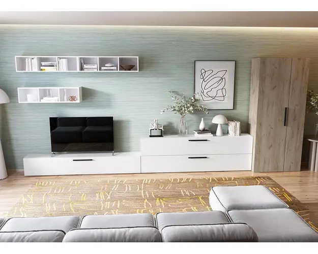 Living Pati 099 - Mobila Sufragerie Alba Living Pati 099 - Mobila Sufragerie Alba face parte dintr-o categorie de mobilier modern, contemporan ce imbina designul cu utilitatea. Familia de living Pati are 4 decoruri: stejar, alb, gri si beton . Am realizat peste 100 de configuratii din care puteti alege cu dimensiuni si stiluri diferite. Dulapul de haine este optional si puteti alege unul sau mai multe bucati. Livrare gratuita si rapida, 4-10 zile lucratoare prin flota proprie Suntem producatori de mobilier, fara intermediari Toate piesele de mobilier au o garantie de 2 ani Corpurile sunt construite din PAL melaminat de 16mm. Cantul aplicat este de 0,6 ce le permite muchiilor sa fie placute la atingere . Video de prezentare familie Videoul de prezentare poate contine alte nuante, mai multe sau mai putine corpuri de mobilier in comparatie cu produsul de pe aceasta pagina. Scopul acestui video este de a detalia aspectul materialelor, accesoriilor cat si a familiei din care face parte. Dimensiuni Living Pati 099 - Mobila Sufragerie Alba Imaginea alaturata prezinta compartimentarea pentru mobila de sufragerie Pati. Aceasta configuratie contine urmatoarele corpuri: 3 x Corp decorativ: L 91.5 x H 23.2 x A 25 cm 3 x Corp 1850: L 185 x H 29 x A 26.7 cm Optional dulap: L 79.8 x H 185 x A 35 cm Dimensiuni totale living Pati Fara dulap: L 370 x A 26.7 xH 185cm Cu un dulap: L 449.8 x A 35 xH 185cm Spatiul de TV: diagonala maxima 139 cm.Toate corpurile se pot pune pe stanga sau pe dreapta in functie de cum doriti. Nu este obligatoriu pozitionarea ca in prezentare. Ele nu sunt prinse unul de celalalt, sunt independente. SCHITA MONTAJ CORP 1850 INFERIOR SCHITA MONTAJ CORP DECORATIV SCHITA MONTAJ dulap 2U Pati Pretul afisat nu include alte accesorii sau obiecte de decor (TV, tablouri, elemente de iluminat, covor etc.) Dimensiunile sunt exprimate in cm si pot oscila intre ± 10 mm. Produsul se livreaza demontat si este insotit de accesorii si instructiuni de asamblare. Produsul cu denumirea Living Pati 099 - Mobila Sufragerie Alba face parte din brandul Mobila laguna, se afla in categoria Mobila living si sufragerii si subcategoria