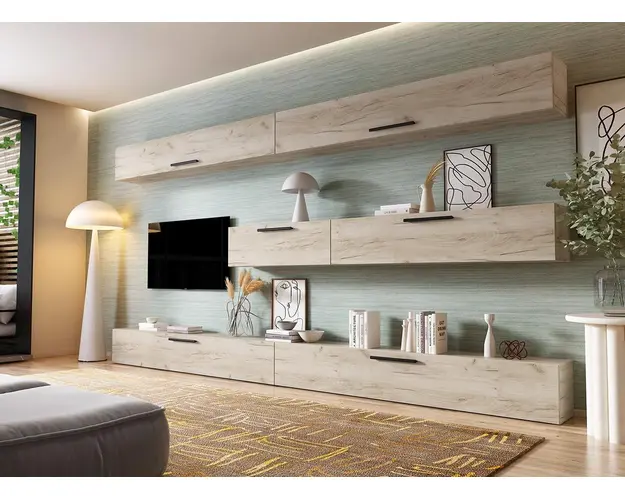 Living Pati 100 - Mobila Sufragerie Stejar Living Pati 100 - Mobila Sufragerie Stejar face parte dintr-o categorie de mobilier modern, contemporan ce imbina designul cu utilitatea. Familia de living Pati are 4 decoruri: stejar, alb, gri si beton . Am realizat peste 100 de configuratii din care puteti alege cu dimensiuni si stiluri diferite. Dulapul de haine este optional si puteti alege unul sau mai multe bucati. Livrare gratuita si rapida, 4-10 zile lucratoare prin flota proprie Suntem producatori de mobilier, fara intermediari Toate piesele de mobilier au o garantie de 2 ani Corpurile sunt construite din PAL melaminat de 16mm. Cantul aplicat este de 0,6 ce le permite muchiilor sa fie placute la atingere . Video de prezentare familie Videoul de prezentare poate contine mai multe corpuri de mobilier sau mai putine in comparatie cu produsul de pe aceasta pagina. Scopul acestui video este de a detalia aspectul materialelor, accesoriilor cat si a familiei din care face parte. Dimensiuni Living Pati 100 - Mobila Sufragerie Stejar Imaginea alaturata prezinta compartimentarea pentru mobila de sufragerie Pati. Aceasta configuratie contine urmatoarele corpuri: 1 x Corp 920: L 92 x H 29 x A 26.7 cm 1 x Corp 1380: L 138 x H 29 x A 26.7 cm 4 x Corp 1850: L 185 x H 29 x A 26.7 cm Optional dulap: L 79.8 x H 185 x A 35 cm Dimensiuni totale living Pati Fara dulap: L 370 x A 26.7 xH 185cm Cu un dulap: L 449.8 x A 35 xH 185cm Spatiul de TV: diagonala maxima 139 cm.Toate corpurile se pot pune pe stanga sau pe dreapta in functie de cum doriti. Nu este obligatoriu pozitionarea ca in prezentare. Ele nu sunt prinse unul de celalalt, sunt independente. SCHITA MONTAJ CORP 1850 COMODA SCHITA MONTAJ CORP 1380 SCHITA MONTAJ CORP 1850 SUPERIOR SCHITA MONTAJ CORP 920 SCHITA MONTAJ dulap 2U Pati Pretul afisat nu include alte accesorii sau obiecte de decor (TV, tablouri, elemente de iluminat, covor etc.) Dimensiunile sunt exprimate in cm si pot oscila intre ± 10 mm. Produsul se livreaza demontat si este insotit de accesorii si instructiuni de asamblare. Produsul cu denumirea Living Pati 100 - Mobila Sufragerie Stejar face parte din brandul Mobila laguna, se afla in categoria Mobila living si sufragerii si subcategoria