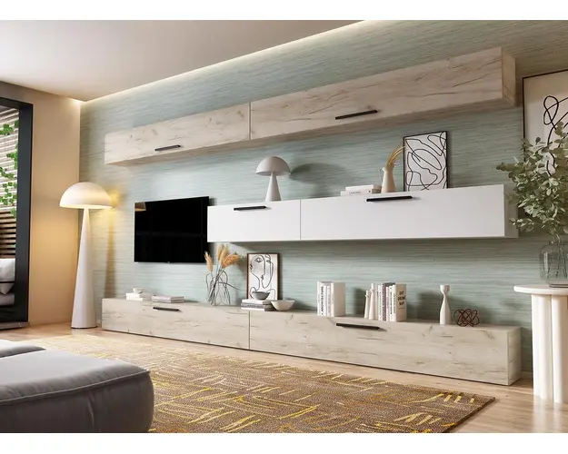 Living Pati 101 - Mobila Sufragerie Stejar + Alb Living Pati 101 - Mobila Sufragerie Stejar + Alb face parte dintr-o categorie de mobilier modern, contemporan ce imbina designul cu utilitatea. Familia de living Pati are 4 decoruri: stejar, alb, gri si beton . Am realizat peste 100 de configuratii din care puteti alege cu dimensiuni si stiluri diferite. Dulapul de haine este optional si puteti alege unul sau mai multe bucati. Livrare gratuita si rapida, 4-10 zile lucratoare prin flota proprie Suntem producatori de mobilier, fara intermediari Toate piesele de mobilier au o garantie de 2 ani Corpurile sunt construite din PAL melaminat de 16mm. Cantul aplicat este de 0,6 ce le permite muchiilor sa fie placute la atingere . Video de prezentare familie Videoul de prezentare poate contine mai multe corpuri de mobilier sau mai putine in comparatie cu produsul de pe aceasta pagina. Scopul acestui video este de a detalia aspectul materialelor, accesoriilor cat si a familiei din care face parte. Dimensiuni Living Pati 101 - Mobila Sufragerie Stejar + Alb Imaginea alaturata prezinta compartimentarea pentru mobila de sufragerie Pati. Aceasta configuratie contine urmatoarele corpuri: 1 x Corp 920: L 92 x H 29 x A 26.7 cm 1 x Corp 1380: L 138 x H 29 x A 26.7 cm 4 x Corp 1850: L 185 x H 29 x A 26.7 cm Optional dulap: L 79.8 x H 185 x A 35 cm Dimensiuni totale living Pati Fara dulap: L 370 x A 26.7 x H 185 cm Cu un dulap: L 449.8 x A 35 x H 185 cm Spatiul de TV: diagonala maxima 139 cm.Toate corpurile se pot pune pe stanga sau pe dreapta in functie de cum doriti. Nu este obligatoriu pozitionarea ca in prezentare. Ele nu sunt prinse unul de celalalt, sunt independente. SCHITA MONTAJ CORP 1850 COMODA SCHITA MONTAJ CORP 1380 SCHITA MONTAJ CORP 1850 SUPERIOR SCHITA MONTAJ CORP 920 SCHITA MONTAJ dulap 2U Pati Pretul afisat nu include alte accesorii sau obiecte de decor (TV, tablouri, elemente de iluminat, covor etc.) Dimensiunile sunt exprimate in cm si pot oscila intre ± 10 mm. Produsul se livreaza demontat si este insotit de accesorii si instructiuni de asamblare. Produsul cu denumirea Living Pati 101 - Mobila Sufragerie Stejar + Alb face parte din brandul Mobila laguna, se afla in categoria Mobila living si sufragerii si subcategoria